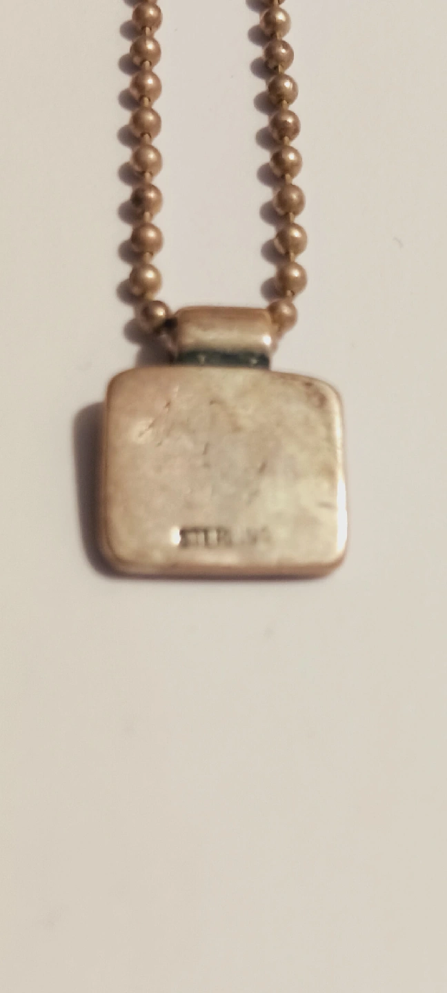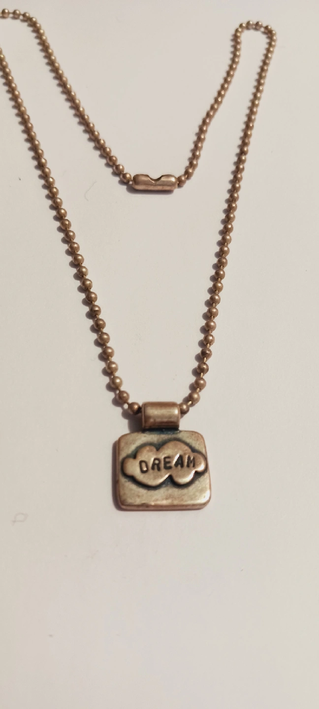 'Dream' Sterling Silver 925 Square shaped Pendant with Necklace. Sterling silver necklace with a square pendant. The back of the pendant is marked 'Sterling'. 15" long. Excellent condition. ALL MY PRICES ARE NEGOTIABLE !!