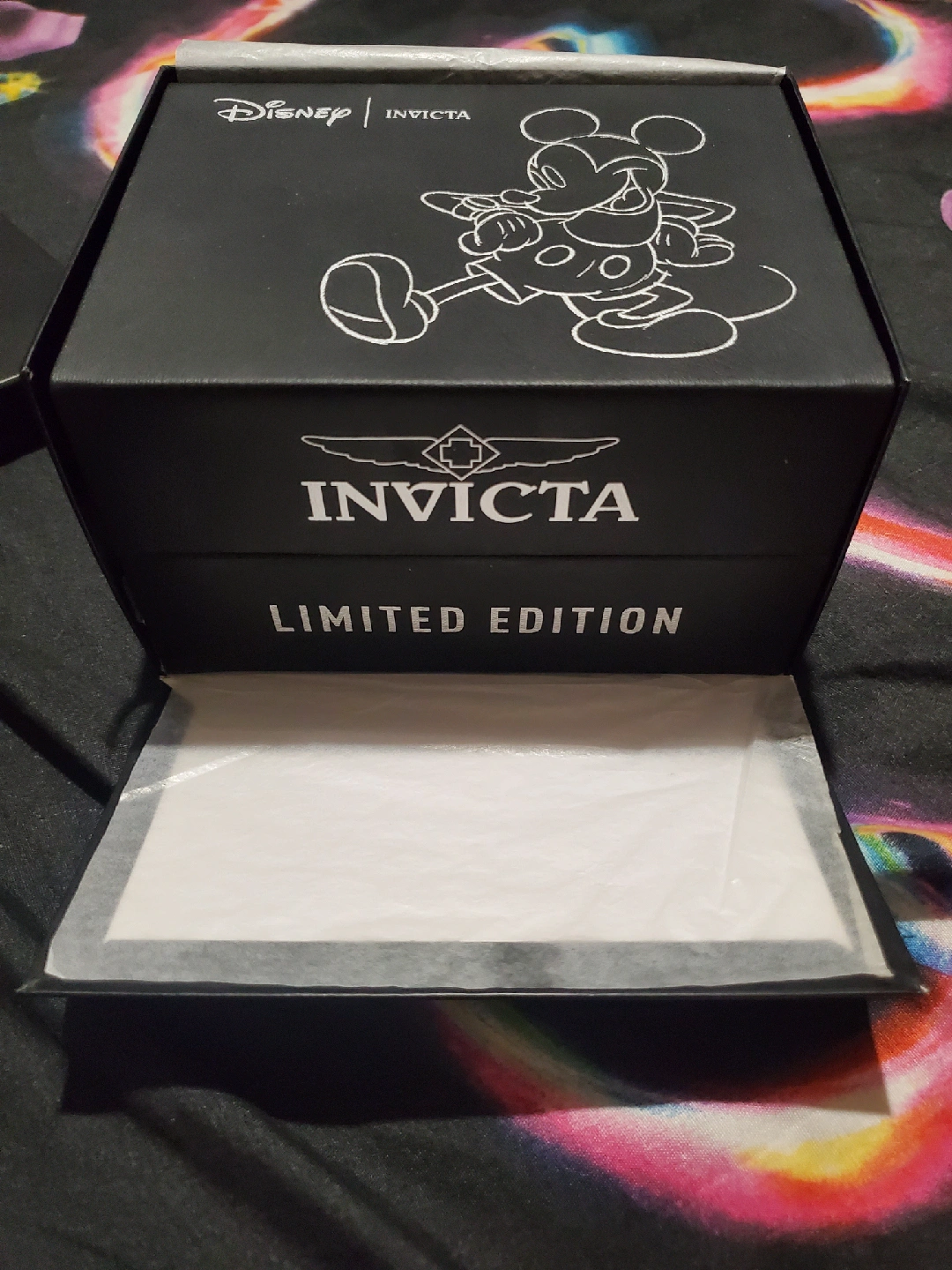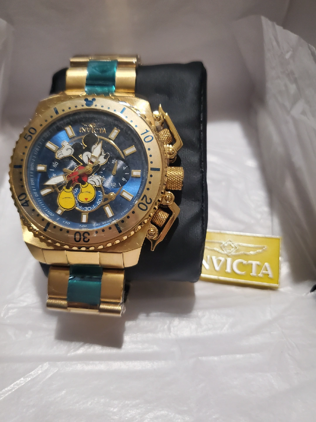 Selling an Invicta Disney Limited Edition watch featuring Mickey Mouse. This gold-tone watch comes with its original box. It's a real eye-catcher!