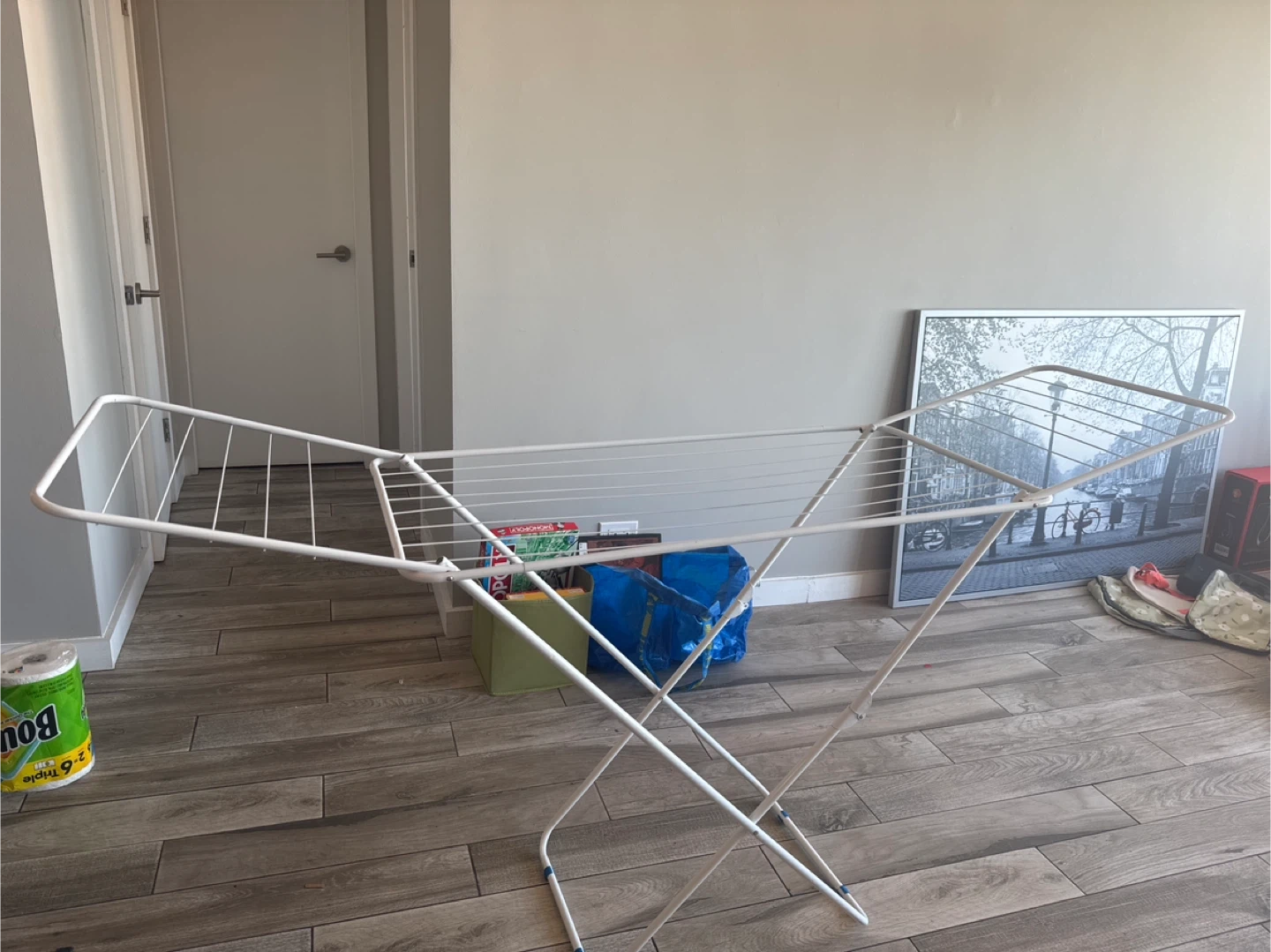 Selling a white clothes drying rack. It's in great condition and ready to use for your laundry needs