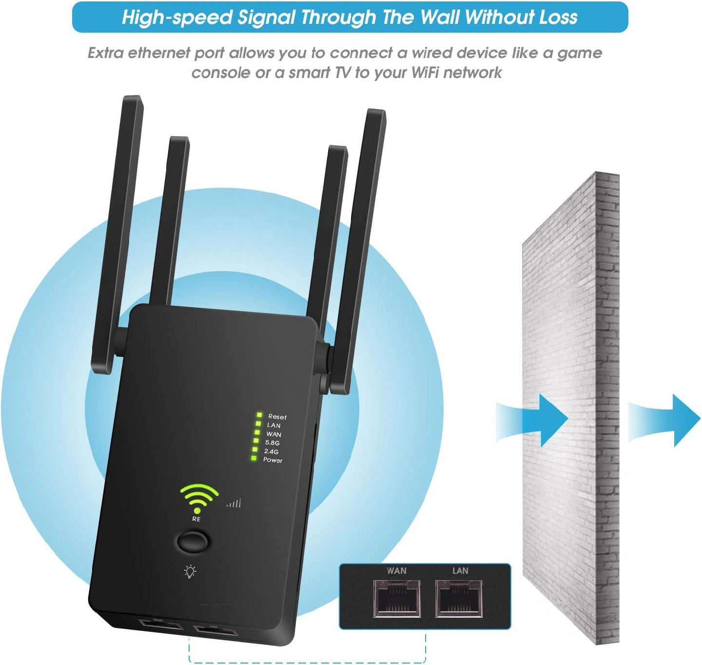 Urant WiFi Range Extender 1200Mbps Signal Booster Range Repeater, Wireless WiFi Amplifier Add Coverage up to 1200 sq.ft, in Your Home, Extend 2.4GHz & 5GHz Wi-Fi