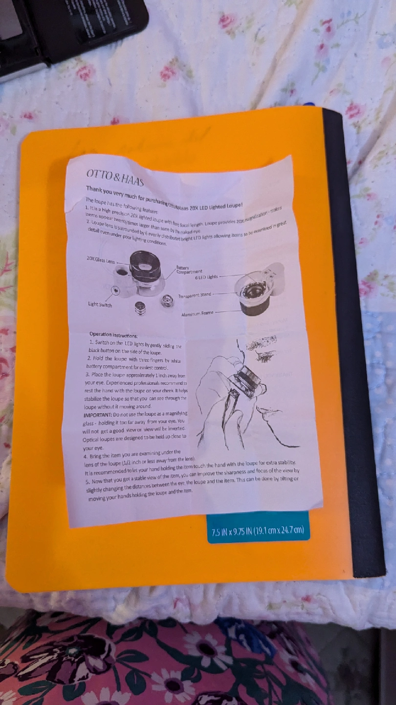 Selling an Otto & Haas 20X Loupe Magnifier! It features high precision optics and LED illumination for great viewing under poor lighting conditions. The loupe provides 20x magnification, making it easier to see smaller items. It has a glass lens and requires 3 LR927 batteries.