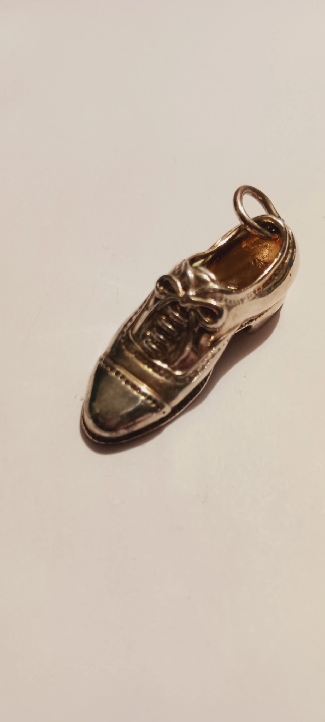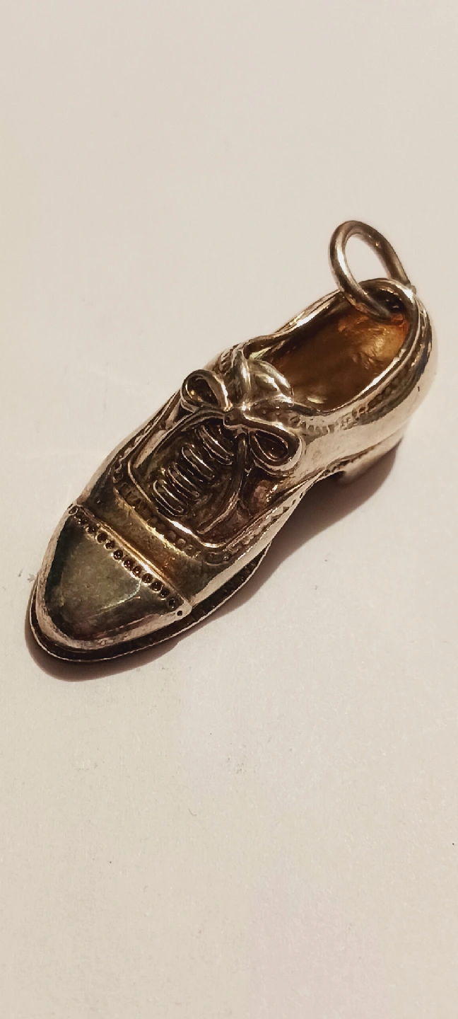 Here's a cute silver shoe pendant! It's in great condition and ready to add some flair to your necklace. 2" long