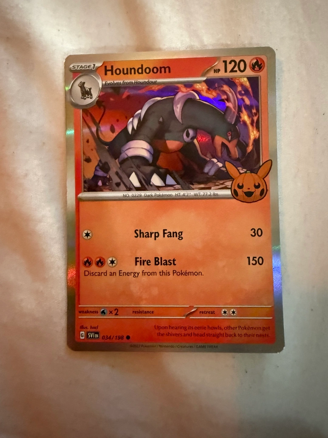 54Selling a Houndoom Pokemon card. It's in great condition and ready for a new home! Feel free to message me if you're interested!