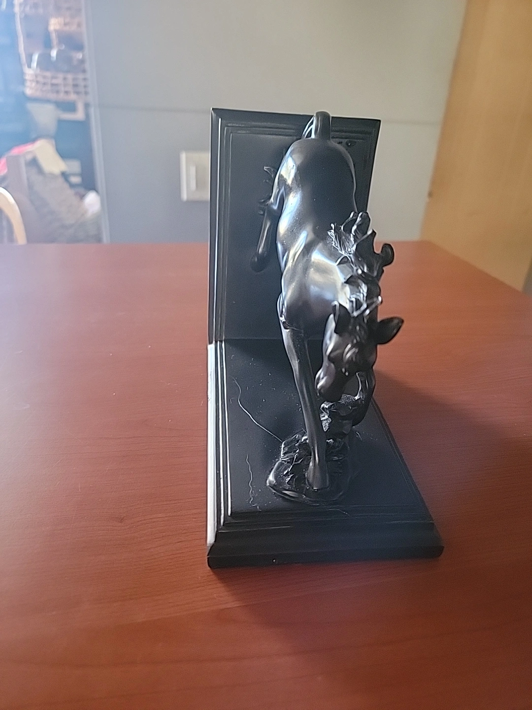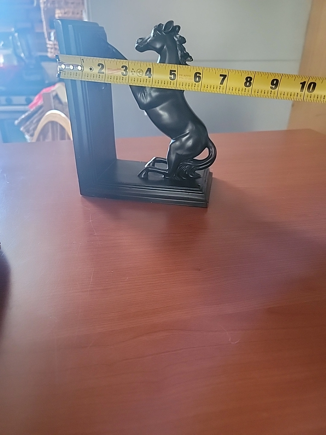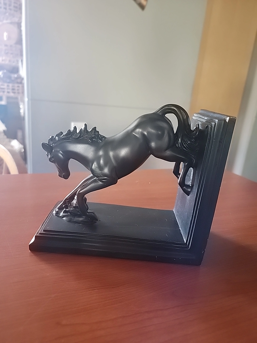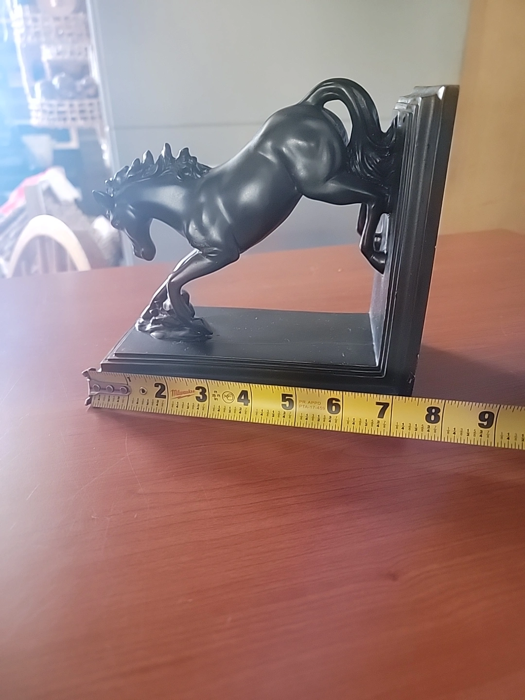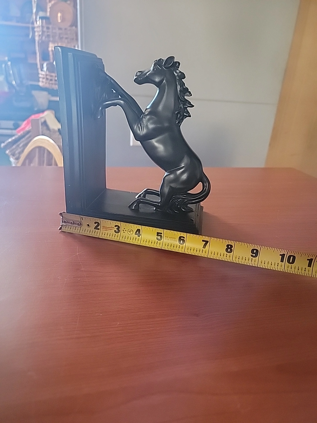 black horse bookend. measures about 6-7 inches tall. Great for adding a touch of equestrian style to your bookshelf!