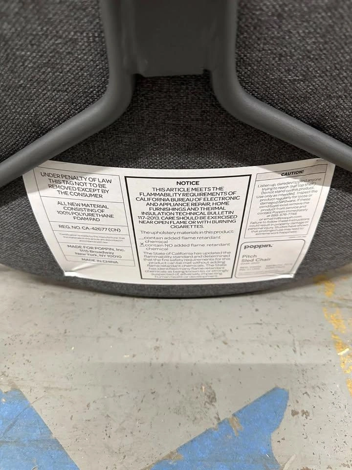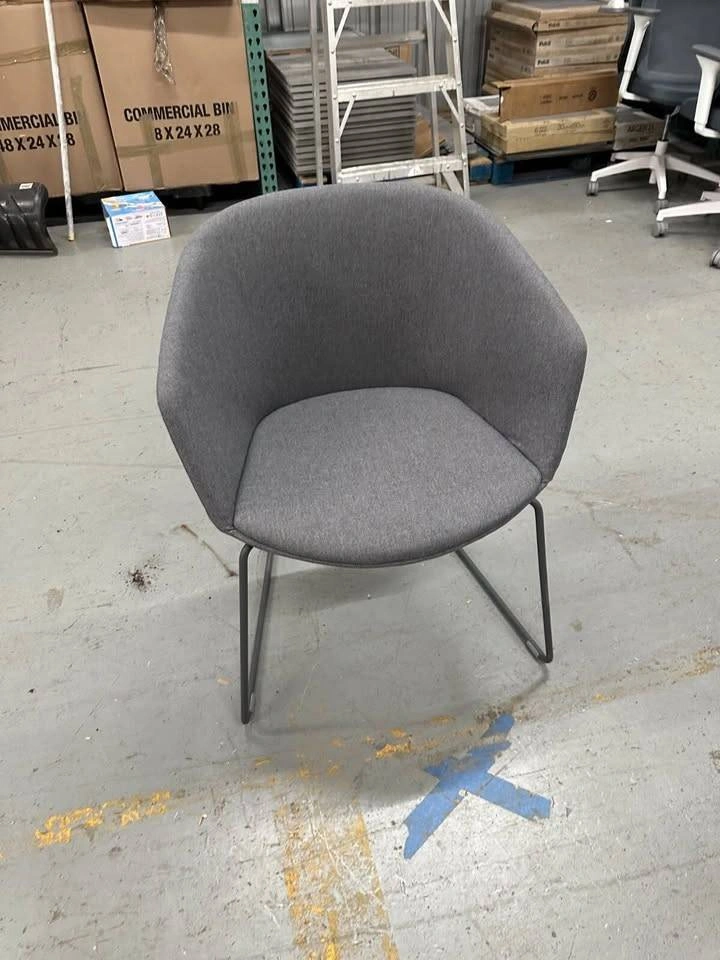 (Total of 4 Available) Features - The Pitch Sled Chair keeps you alert and focused during one-on-ones or while waiting for that big interview - Durable woven Gabriel Medley fabric and impeccably tailored upholstery - Fully upholstered and cushioned for comfort - Painted steel base slides around easily - Meets or exceeds BIFMA's durability standards for office furniture - The Pitch Sled Chair has achieved Indoor Advantage Gold Certification - Designed by Poppin in NYC - Dimensions - Product: 25.5"W x 24"D x 30.5"H - Seat Height: 18"