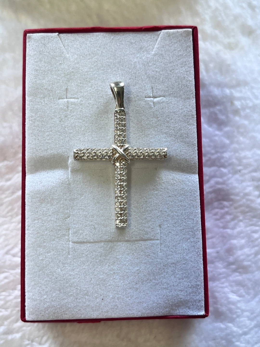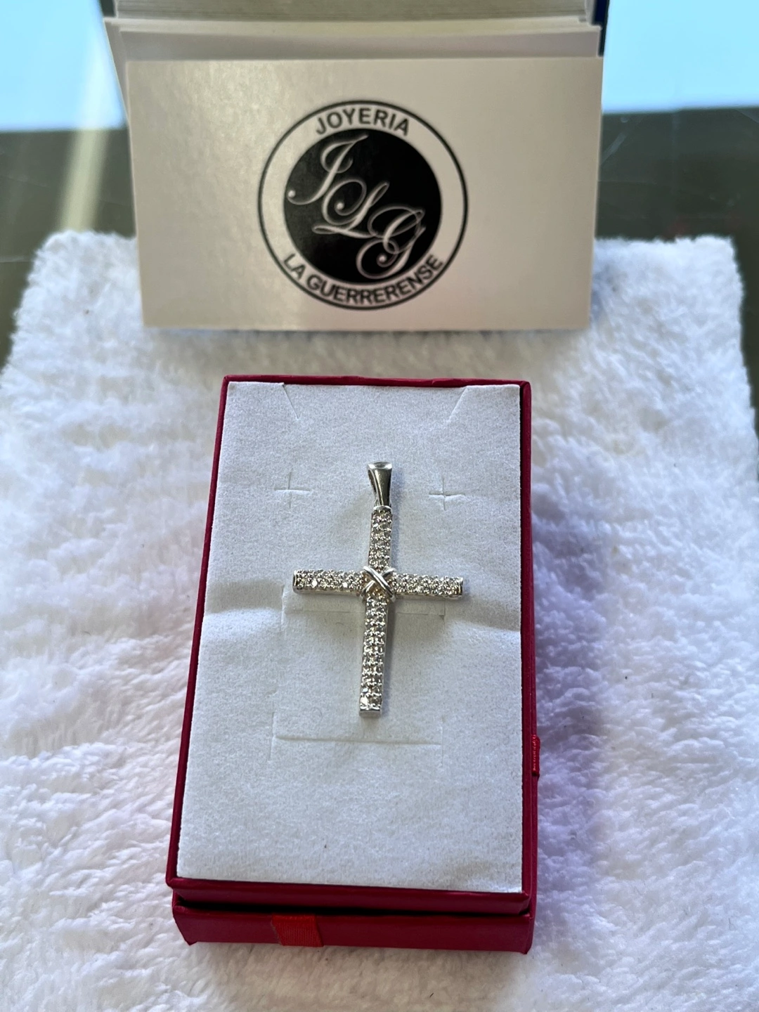 65Selling a beautiful silver cross pendant that comes in its original box! It's in excellent condition and ready to be worn or gifted. Perfect for adding a touch of elegance to any outfit! Cruz Plata 9.25 de Taxco con piedreria lista para en tregar