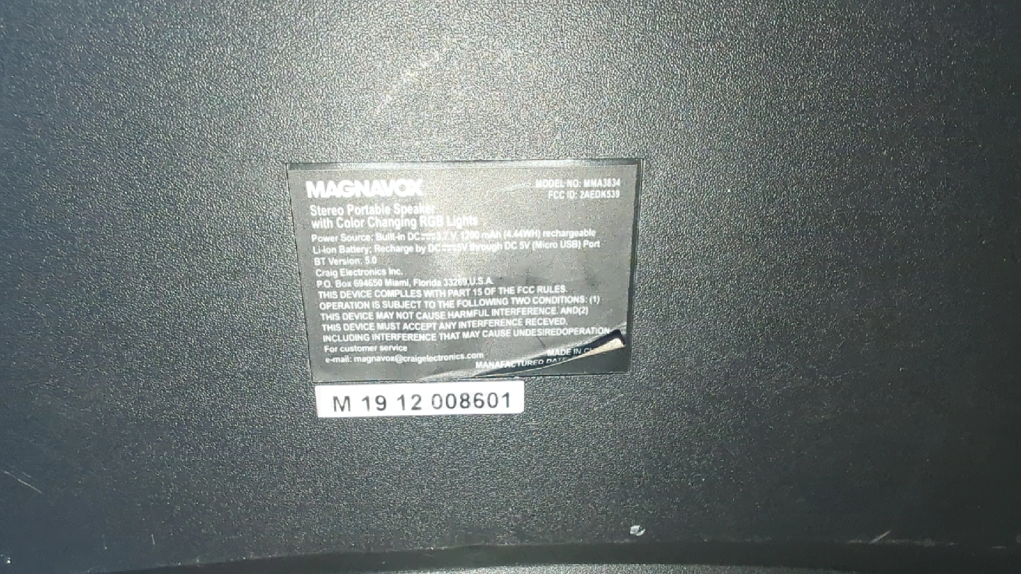 15Selling a Magnavox stereo portable speaker. It has color changing RGB lights. It has a built-in rechargeable Li-ion Battery. It also has USB and TF card inputs. We offer layaway Ask for Alonso Message me for location