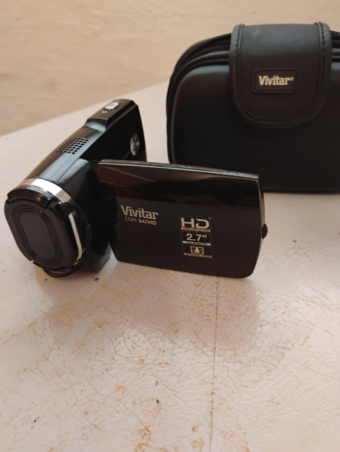 Selling a Vivitar DVR 947HD camcorder! It's in great condition and comes with its case and charger wires.
