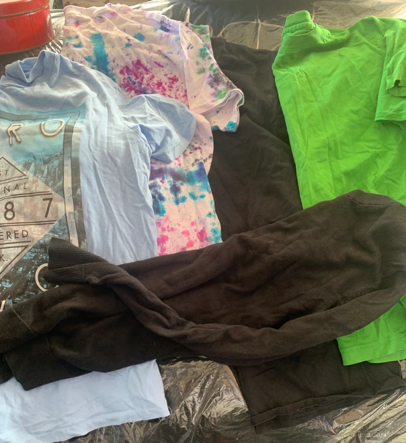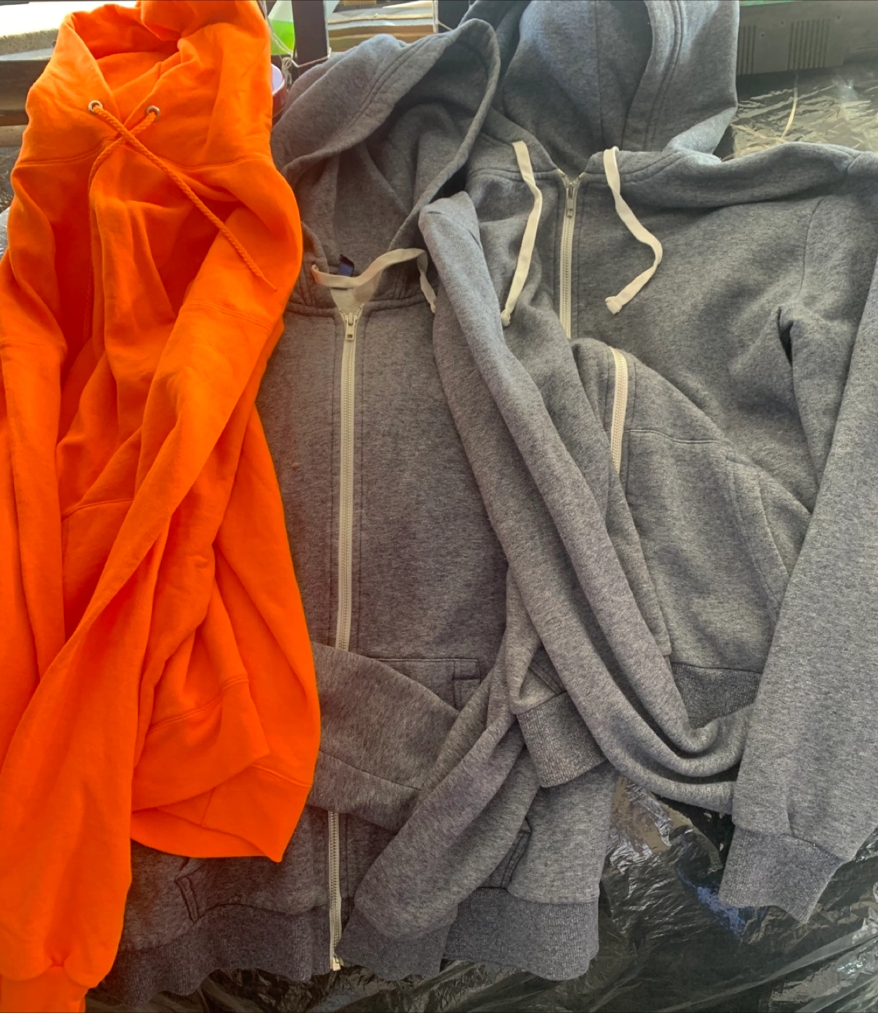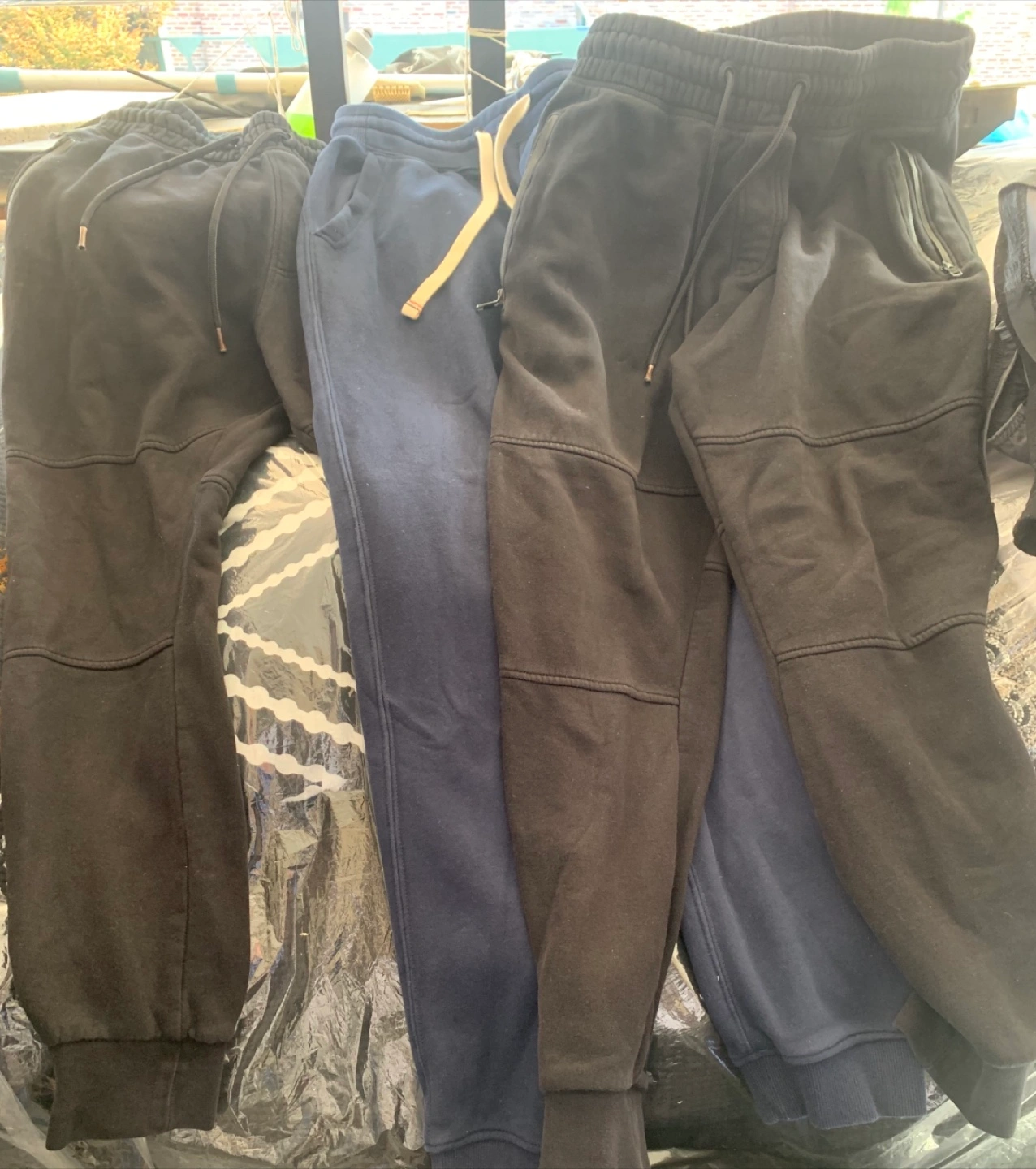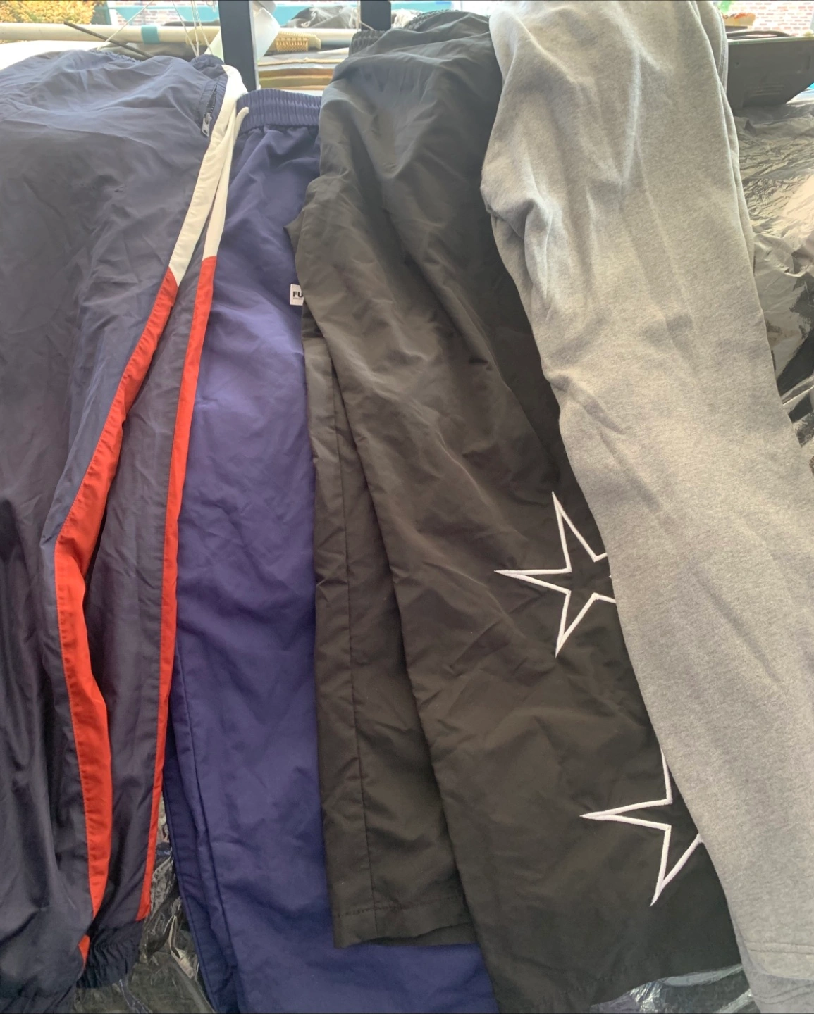 Giving away a bundle of assorted men's clothing! Includes hoodies, pants, and shorts in various colors and styles. Great for casual wear or workouts. Check out the photos for details!