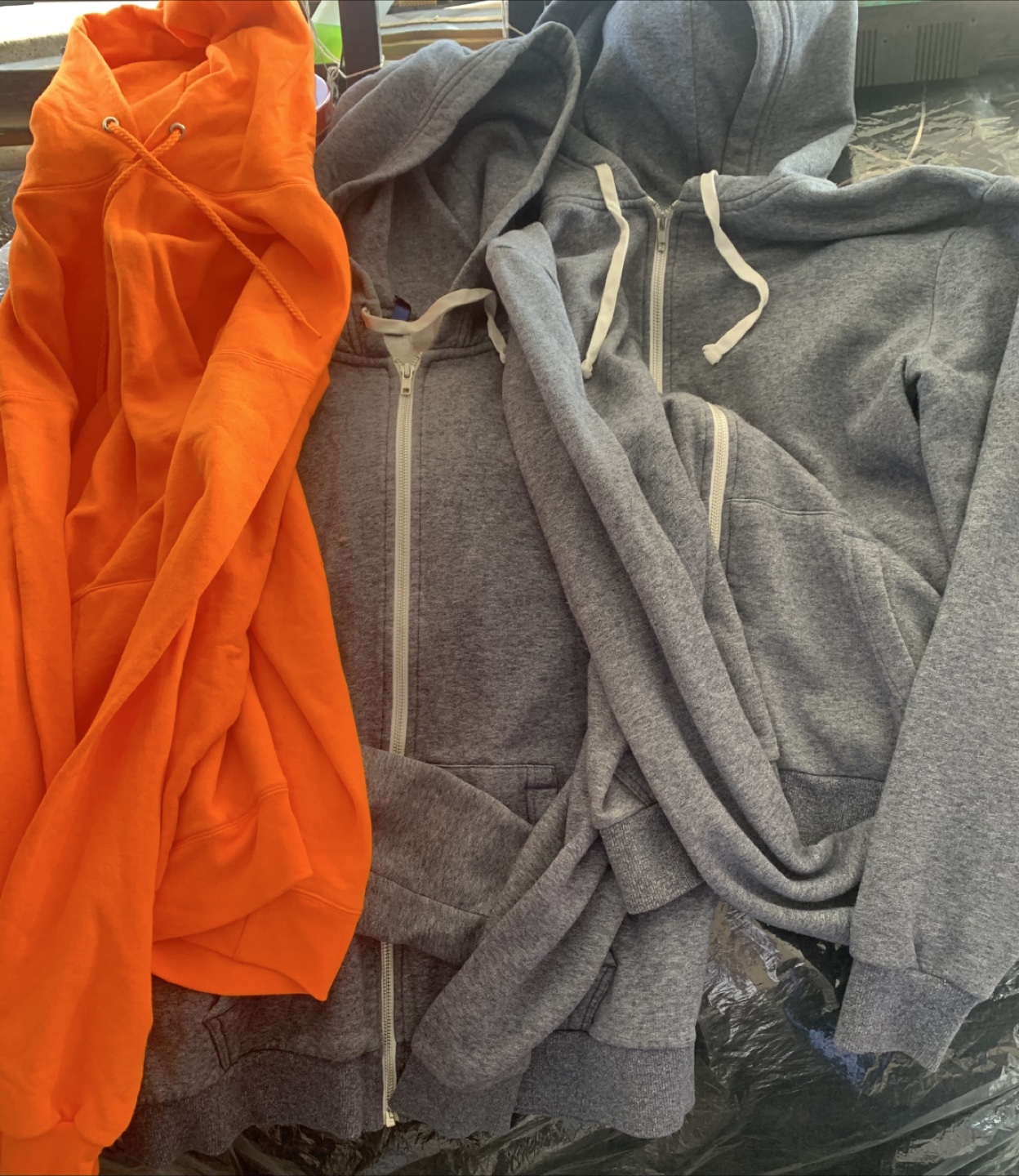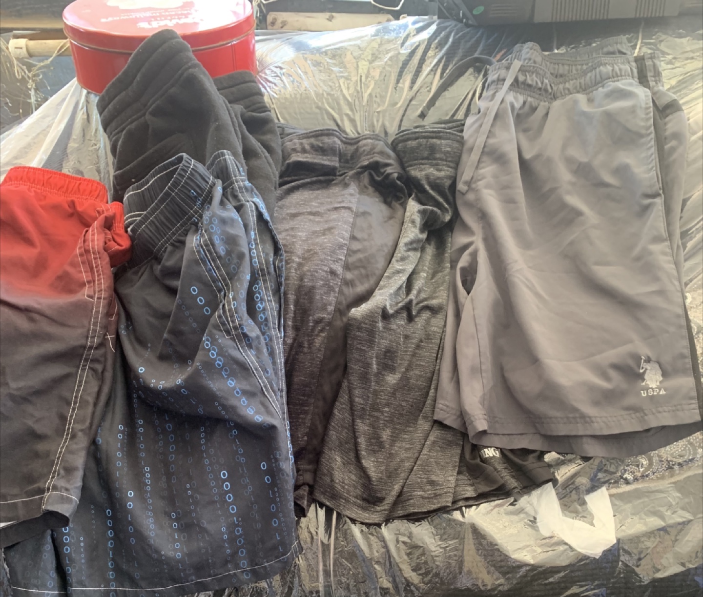 Giving away a bundle of assorted men's clothing! Includes hoodies, pants, and shorts in various colors and styles. Great for casual wear or workouts. Check out the photos for details!