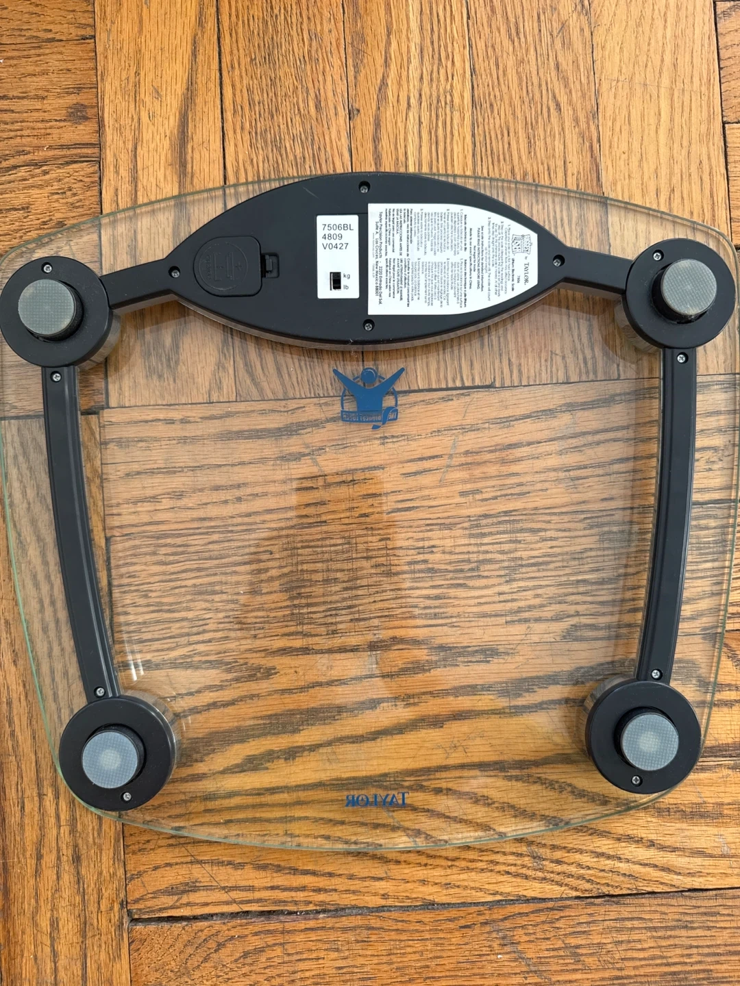 Selling a Taylor digital glass body weight scale. It's in great condition and ready to help you track your fitness goals! It features a clear glass platform and a digital display for easy reading