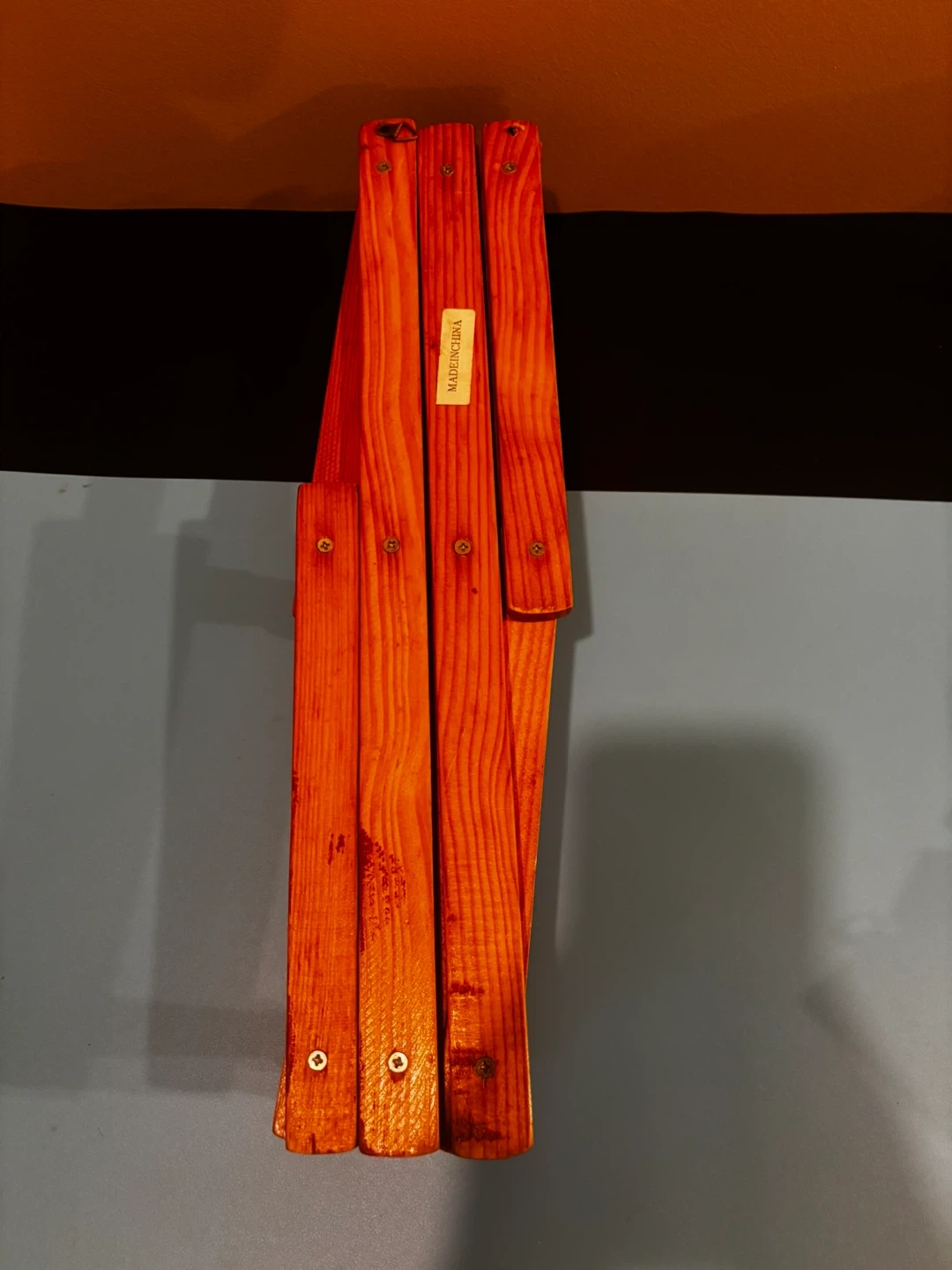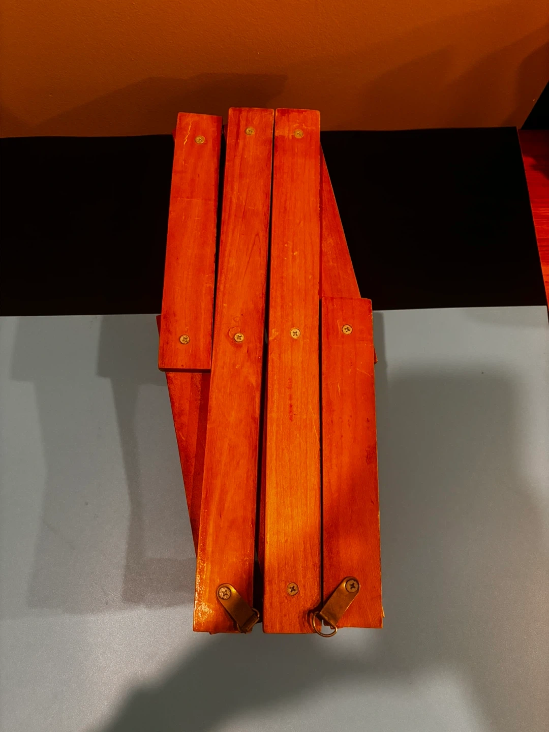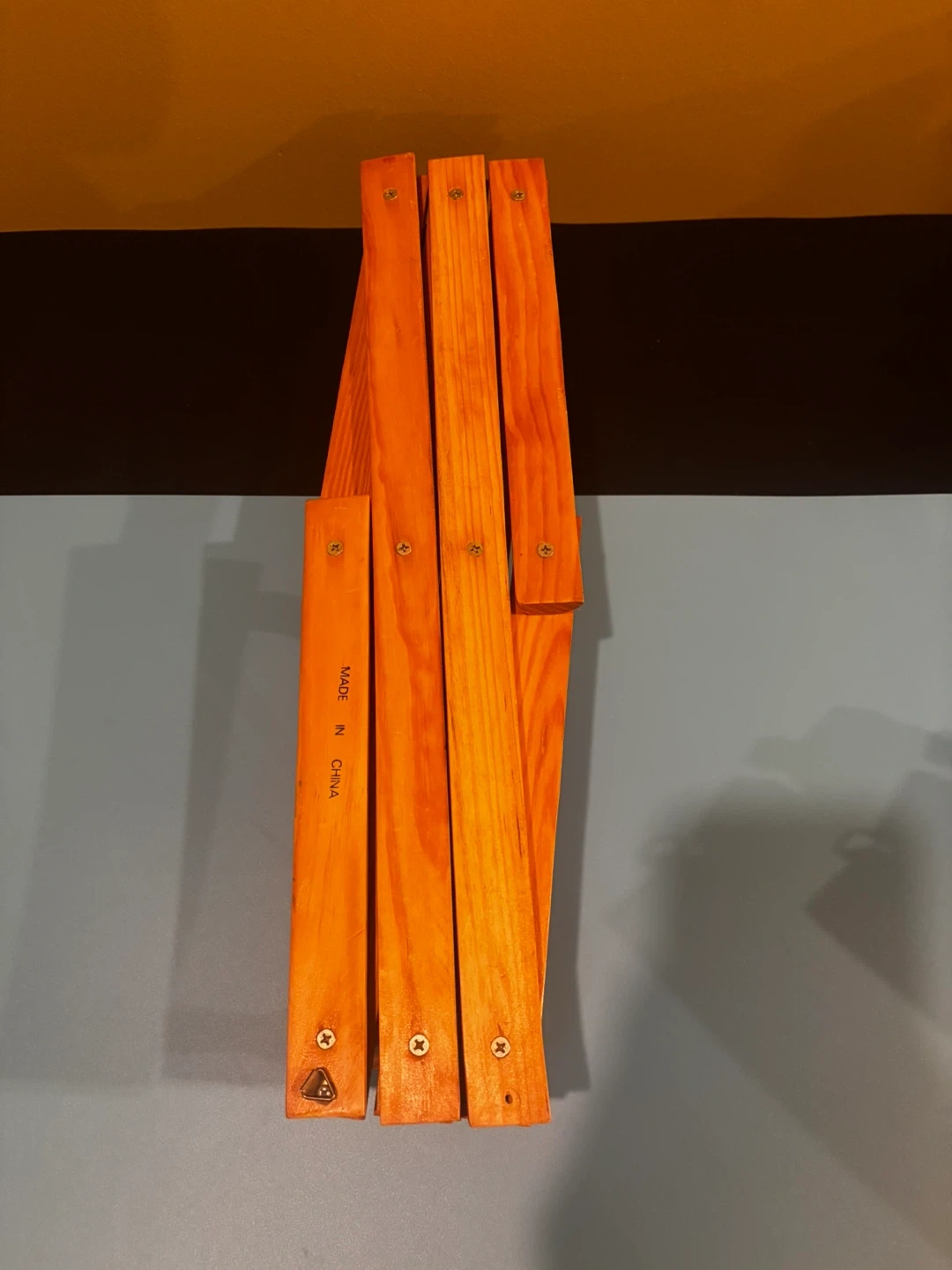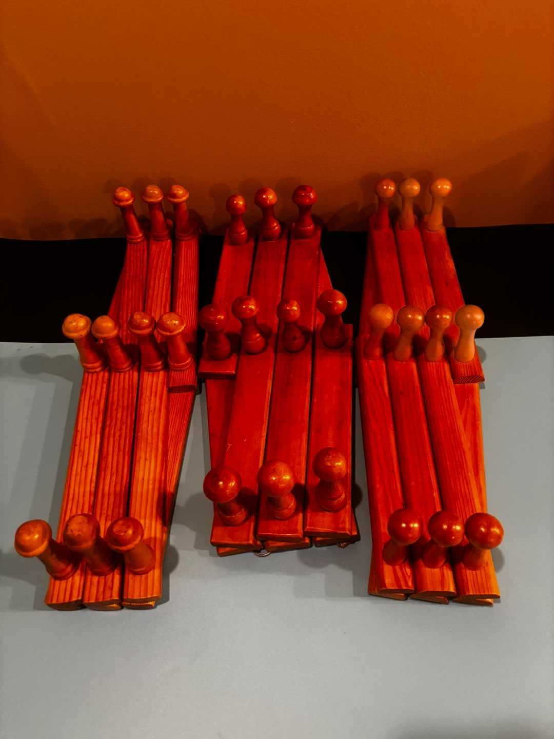 This is a wooden accordion-style wall hanger. It extends and retracts, offering multiple hooks for hanging items. Made of wood. $3 each