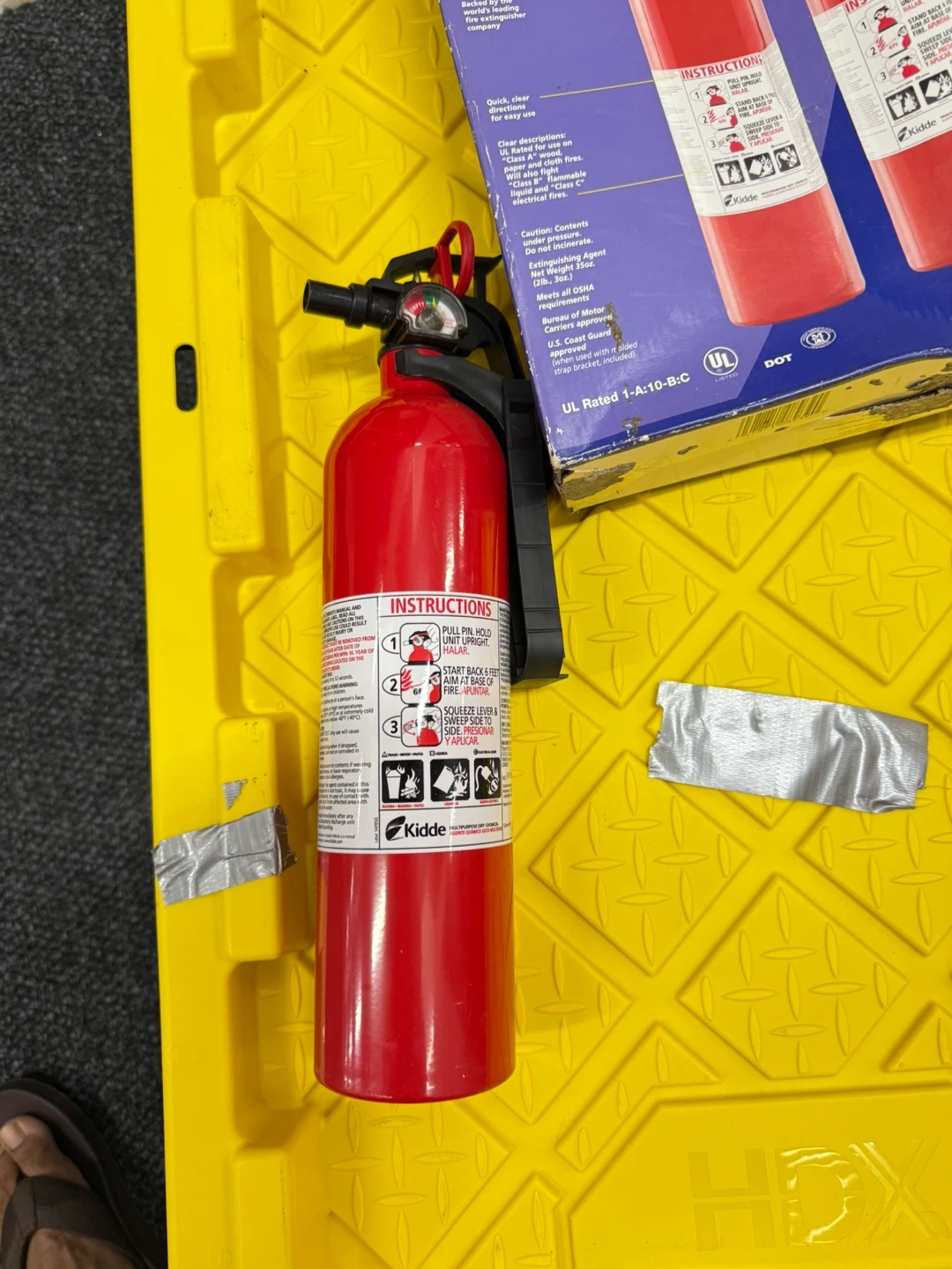 Selling a Kidde fire extinguisher! It's red and comes with its box. Perfect for home safety!