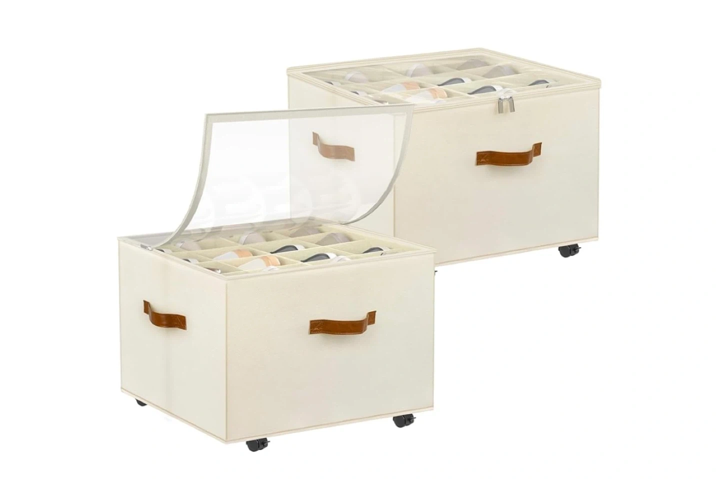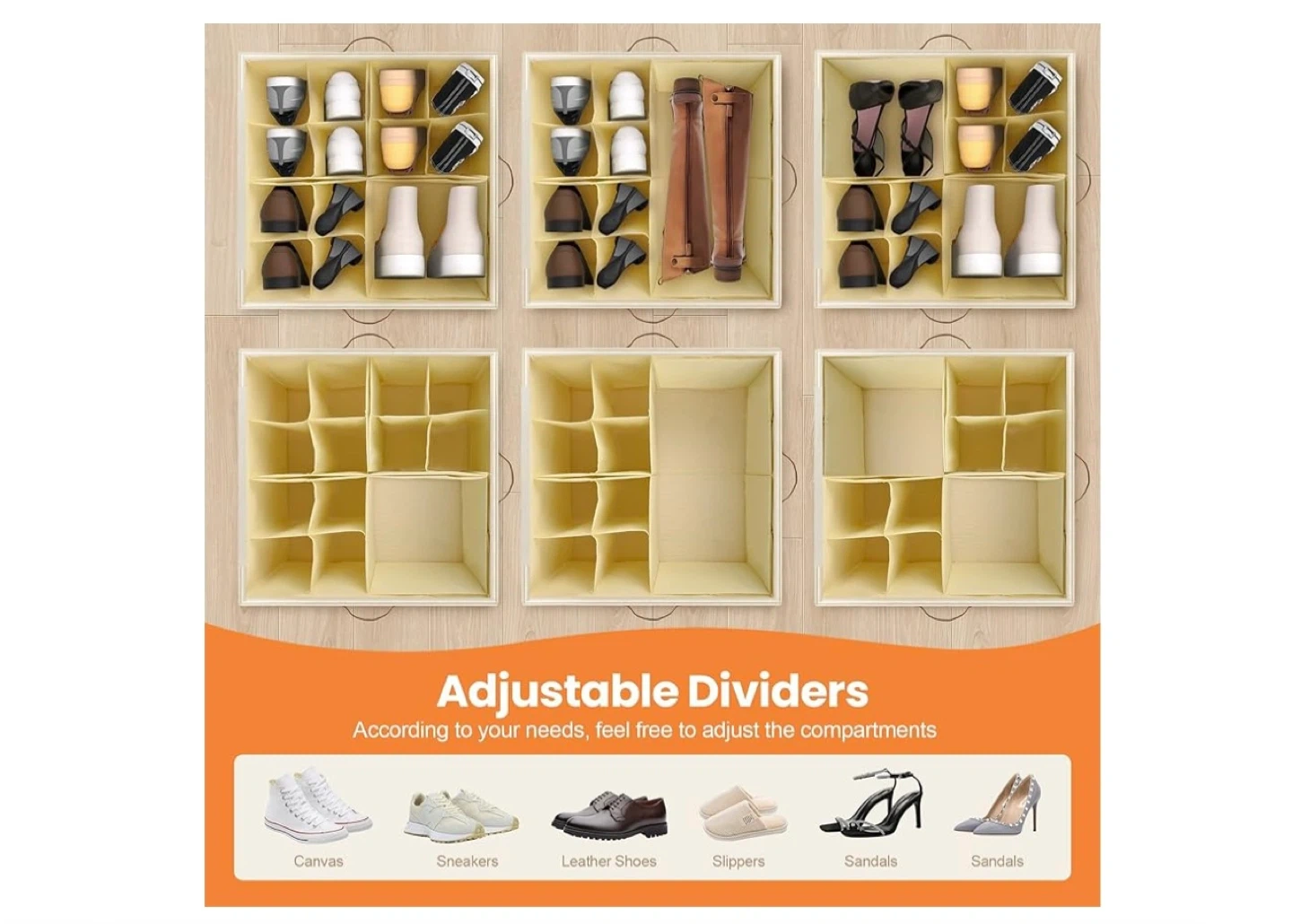 Keep your shoes organized with this adjustable storage box! It features adjustable dividers so you can customize the compartments to fit your needs. The box has a large storage capacity, fitting up to 8-16 pairs of shoes. Dimensions are 17 x 17 x 12.5 inches