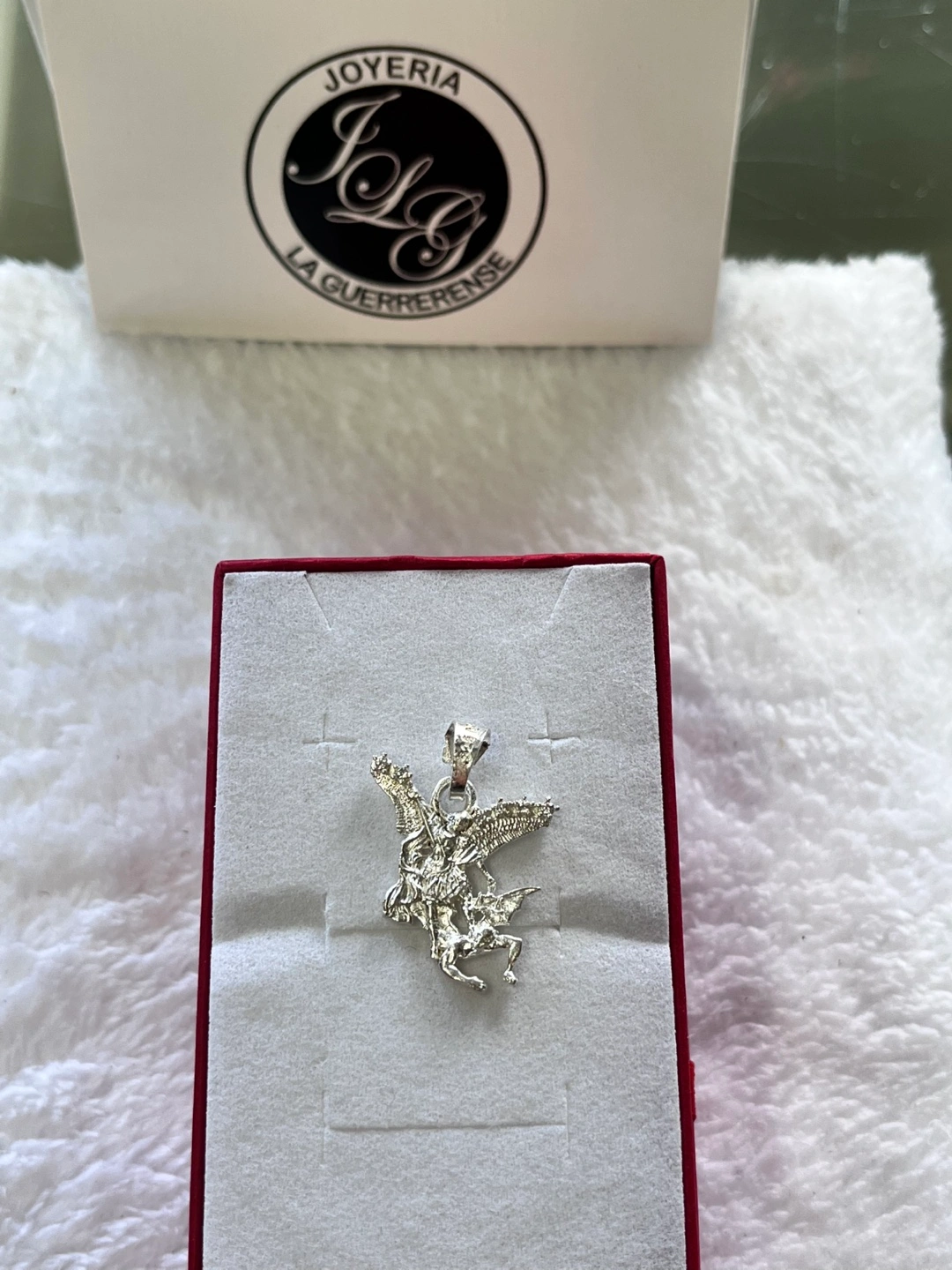 65Selling a silver 9.25 Pegasus pendant. San Michael Arcangel It comes in a box. Hermosa medalla de san Miguel Arcángel plata 9.25 de Taxco