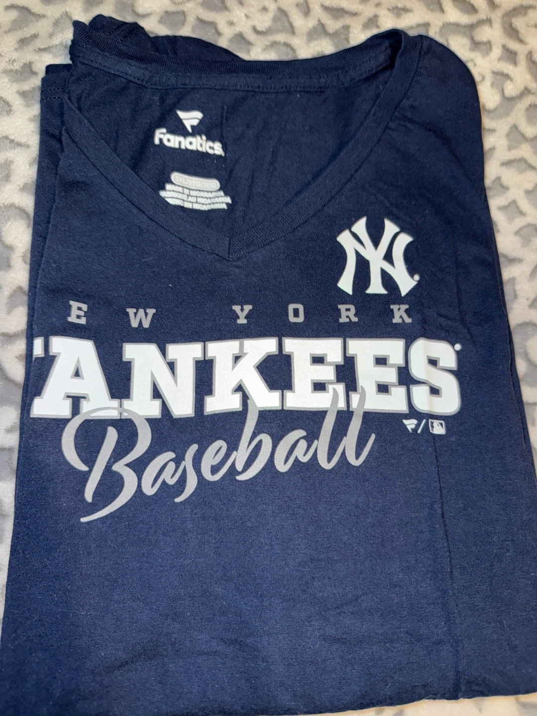 Selling a Fanatics New York Yankees baseball t-shirt in size 3XL. It's a navy blue v-neck made from 100% cotton. Smoke-free home. 🔺Unisex