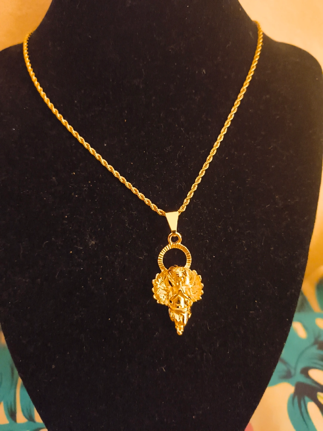15Selling a beautiful gold angel pendant necklace. It has a delicate and intricate design. The necklace is in great condition and would make a lovely addition to anyone's jewelry collection