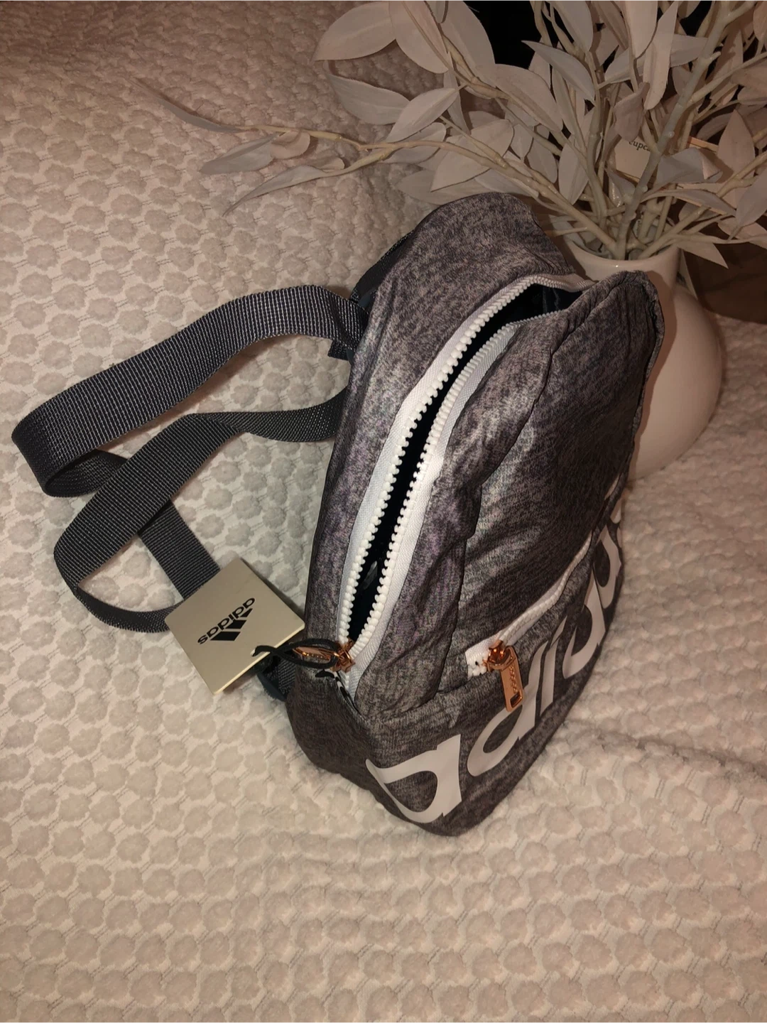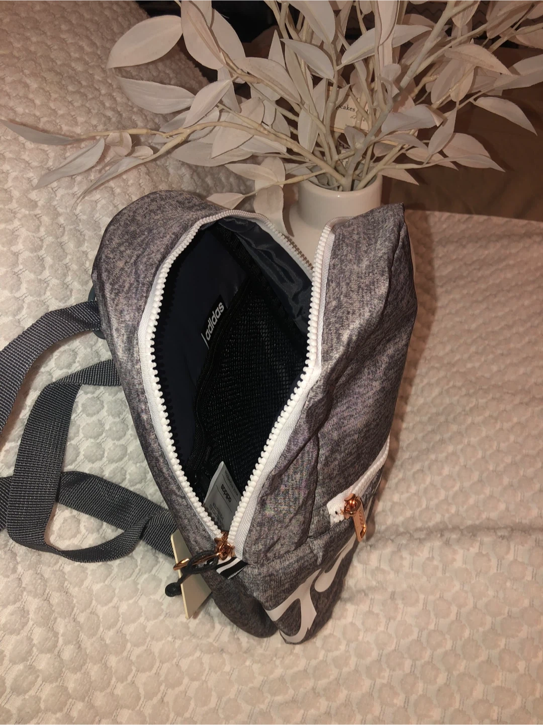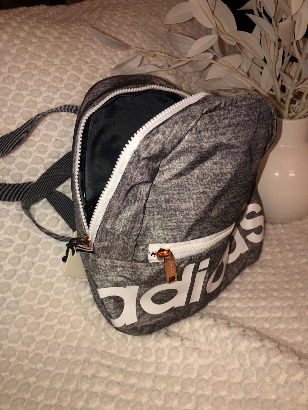 15This is an Adidas mini backpack in gray! It's perfect for carrying your essentials. The backpack is lightweight and portable, making it great for on-the-go use. Originally bought for $35