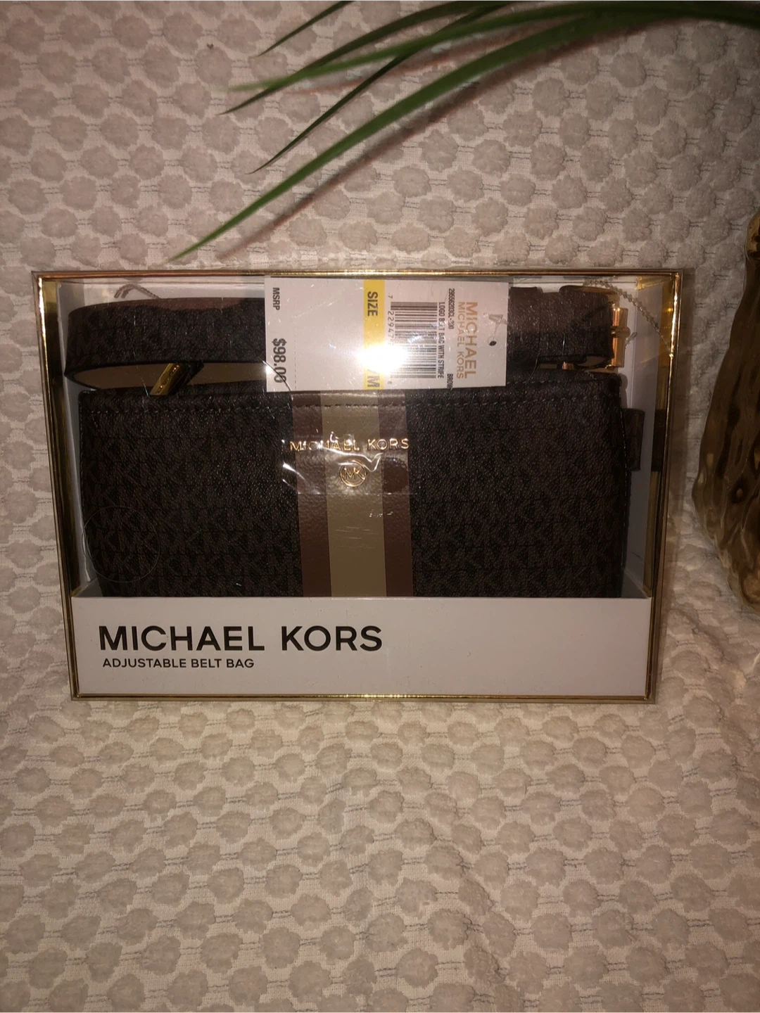 15Selling a brand new Michael Kors adjustable belt bag! It comes in its original box and has never been used. The MSRP is $98.08. It features the logo boat bag design with a stripe. Size S/M