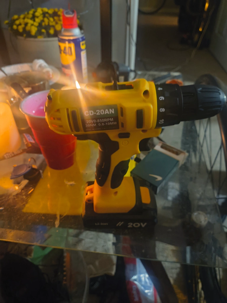 brand new in the box never been used. it's a DeWalt knock-off at a fraction of the price. for the money it's a damn good drill