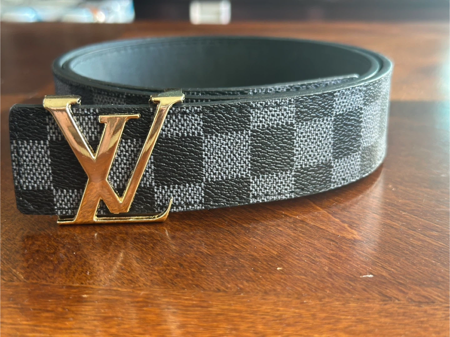 10Selling a Louis Vuitton Damier Graphite belt. It's in great condition and comes with its original box. The belt features the iconic LV logo buckle in gold tone and the Damier Graphite pattern.