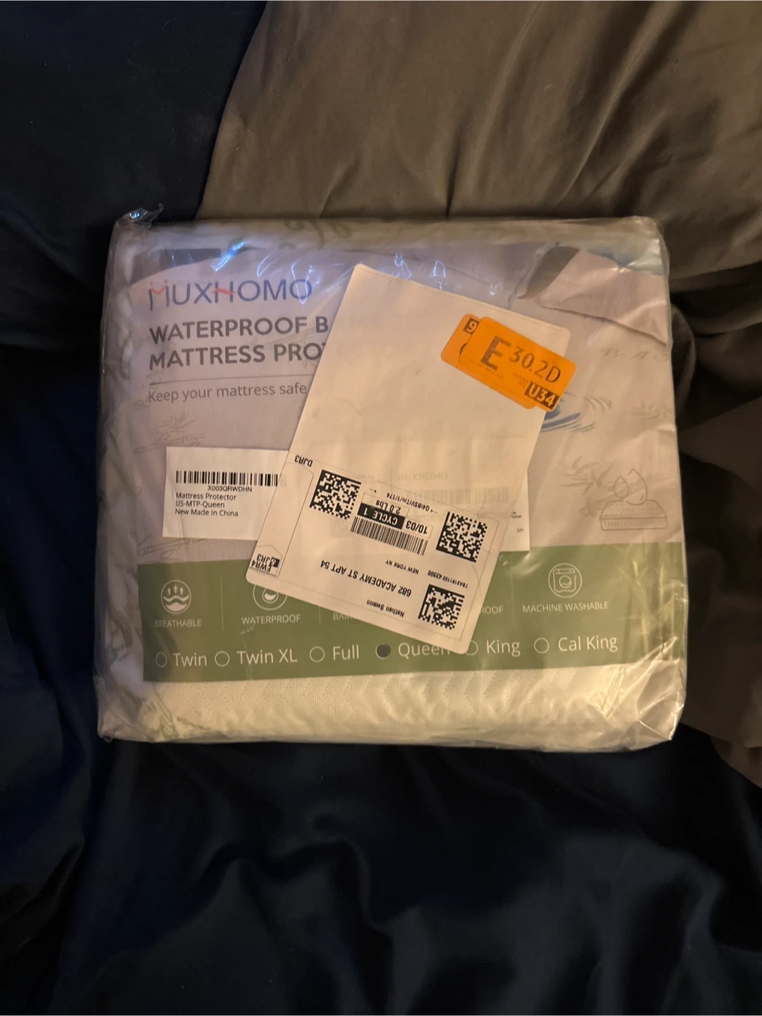 I'm selling a new MUXHOMO waterproof mattress protector in the Queen size! It's still in its original packaging. This protector is breathable and machine washable, perfect for keeping your mattress safe and clean