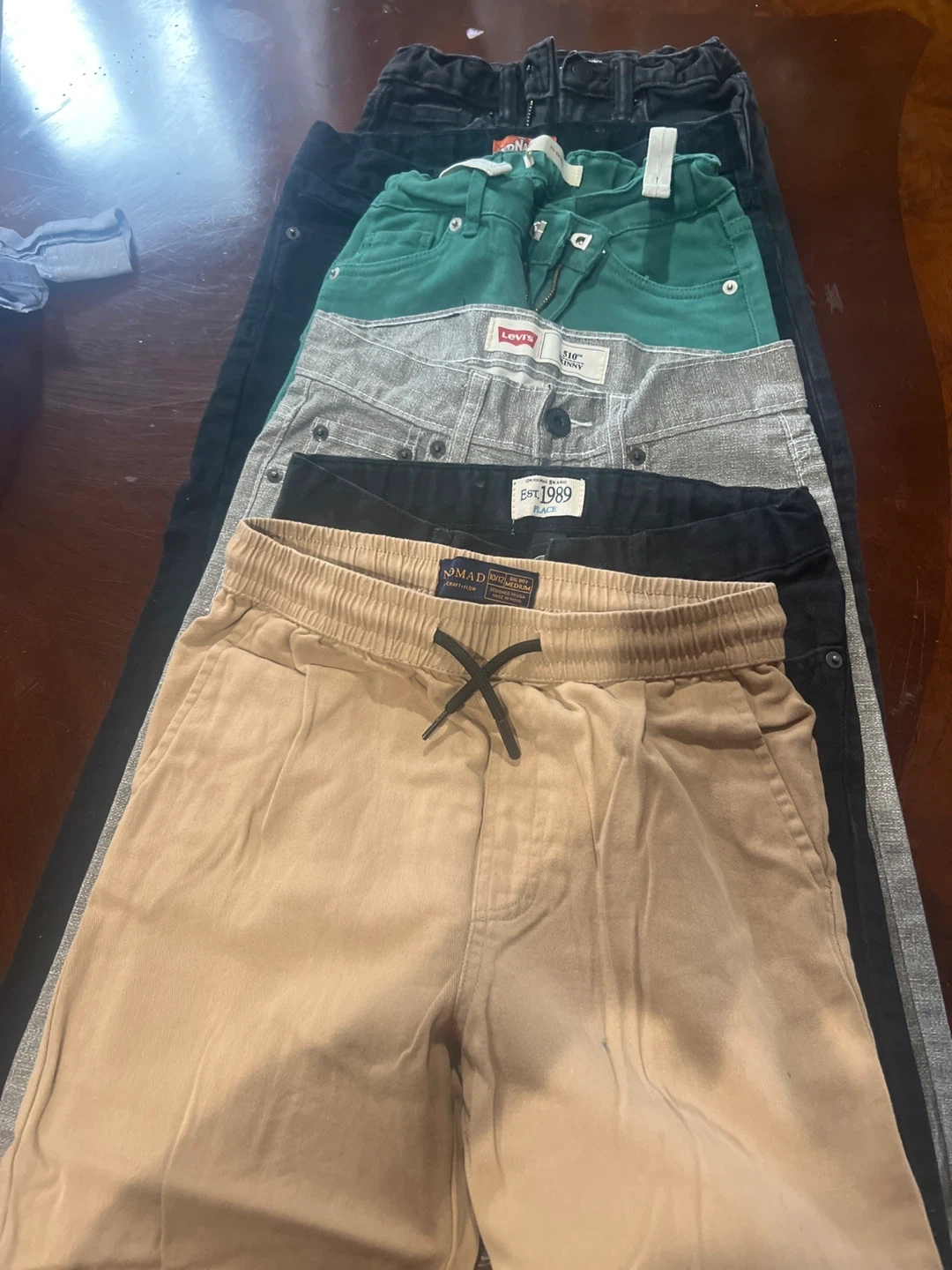 Selling a bundle of kids' pants in various styles and colors! Includes brands like Levi's, The Children's Place, and Mad. Sizes range around 10/12 (Medium). Great for stocking up!$10 each
