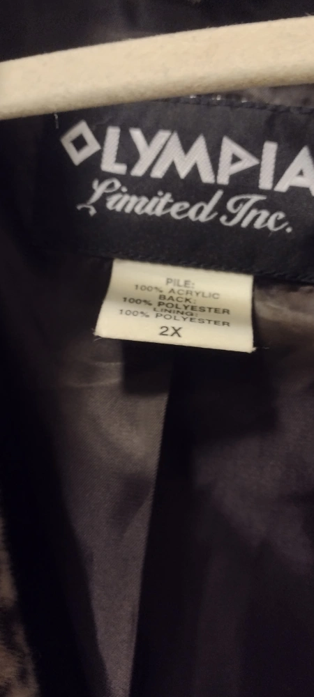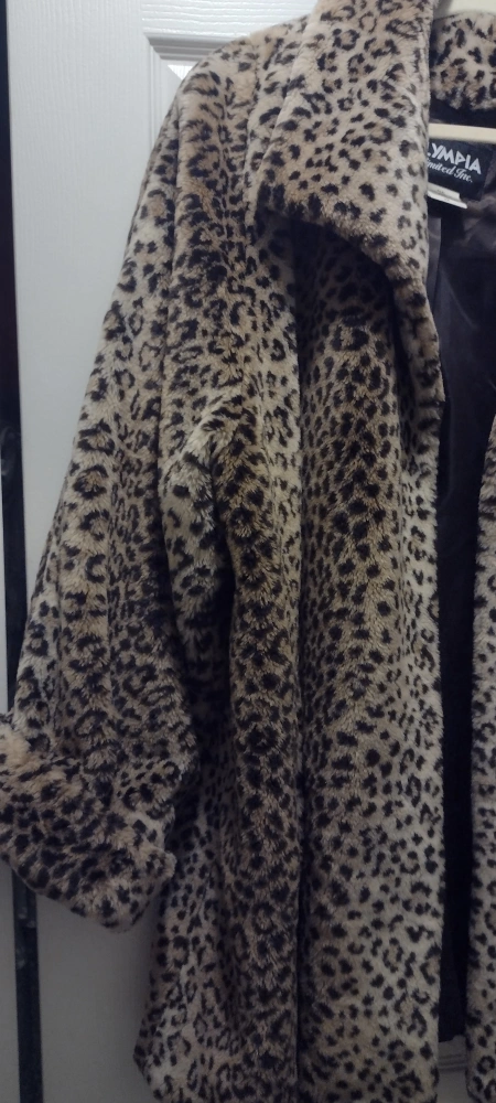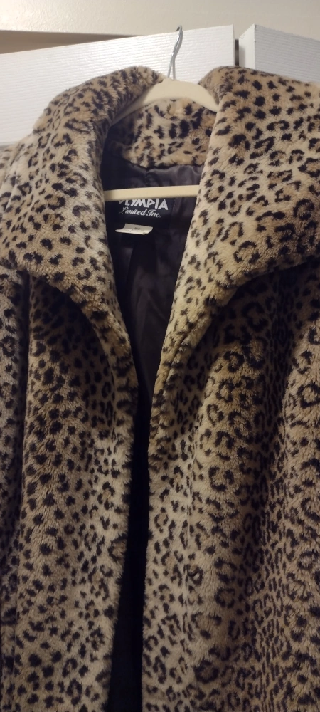 Selling a fun leopard print coat from Olympia Limited Inc. It's a size 2X and made with a soft, faux furry pile of 100% acrylic. Freshly washed and ready to add bit of flair to your wardrobe!