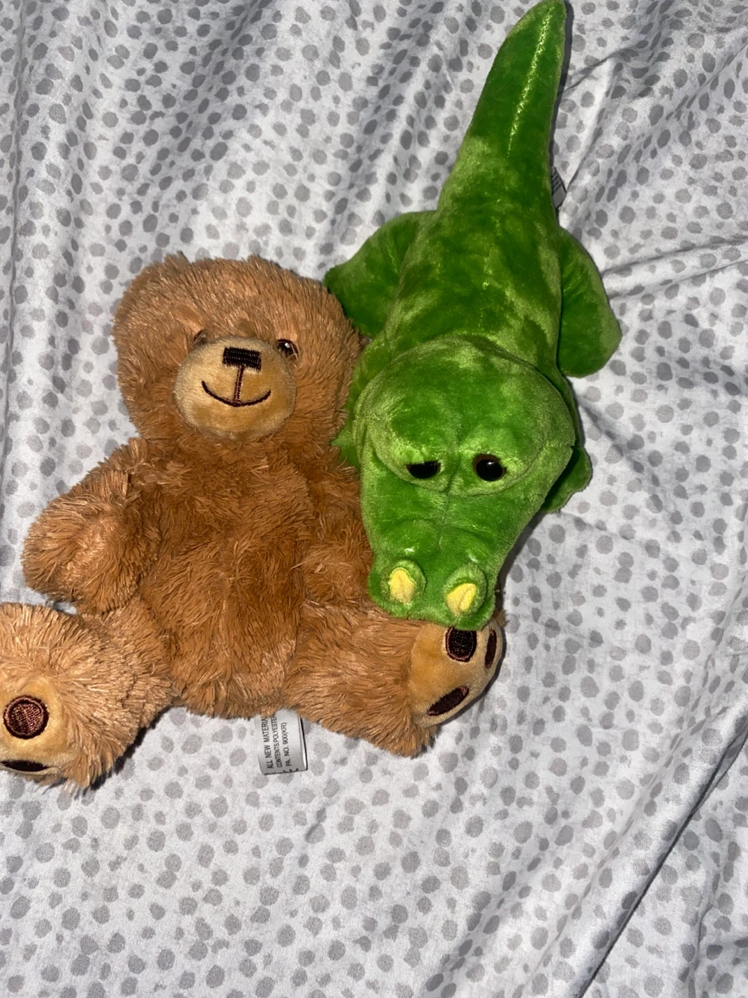 98Selling a cute pair of plush toys! There's a cuddly brown bear and a friendly green alligator. Both are in good condition and ready for a new home.