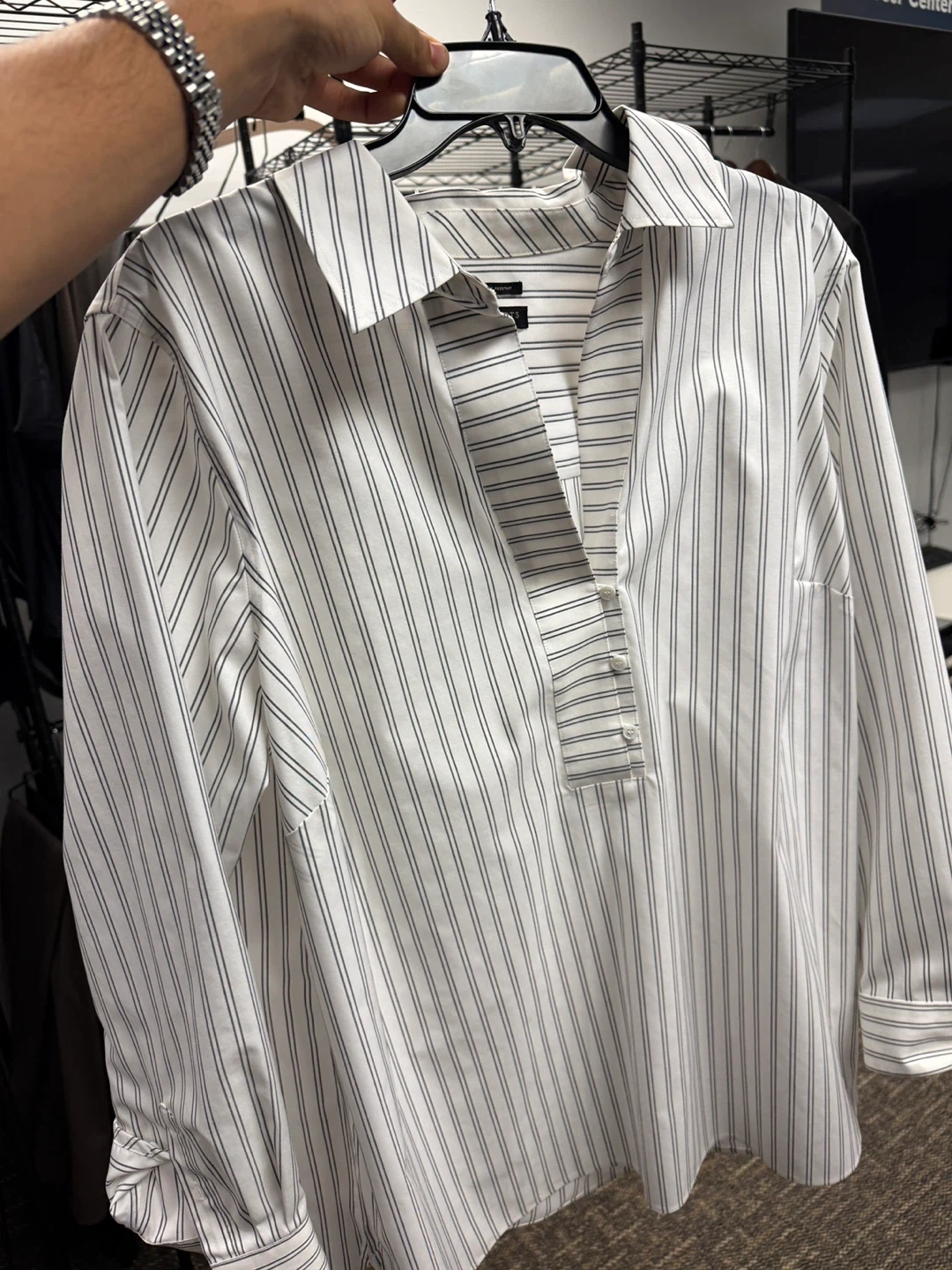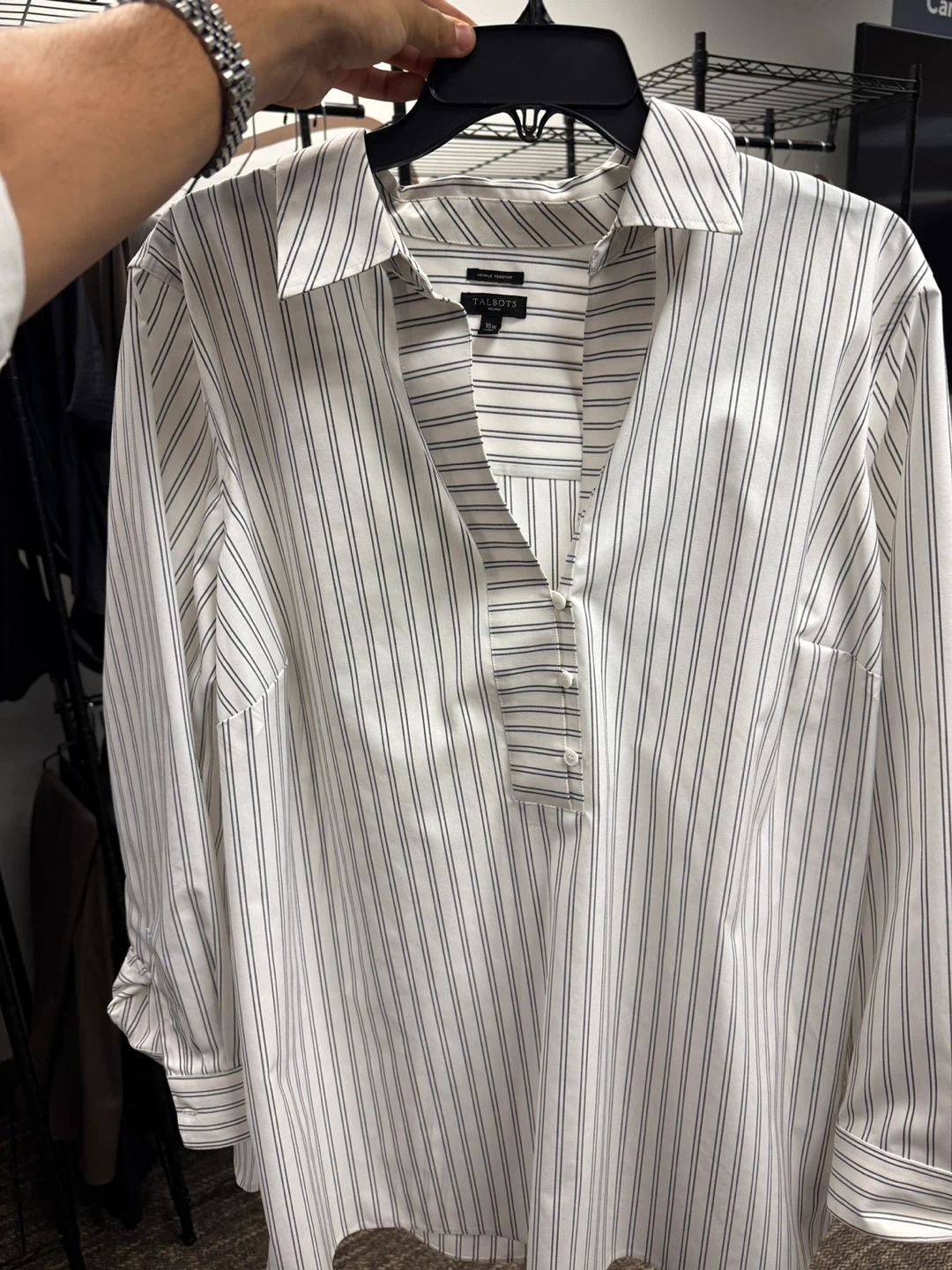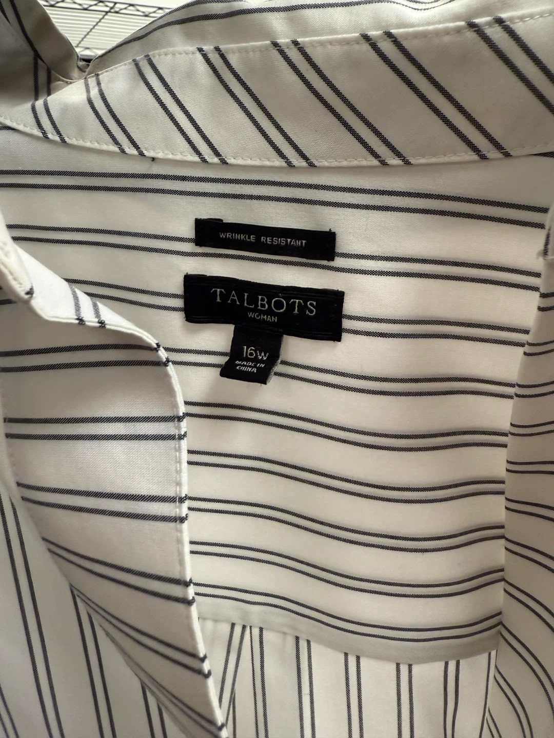 65Selling a Talbots Woman blouse in size 16W. It features a classic striped pattern and is wrinkle resistant. Perfect for a professional or casual look!
