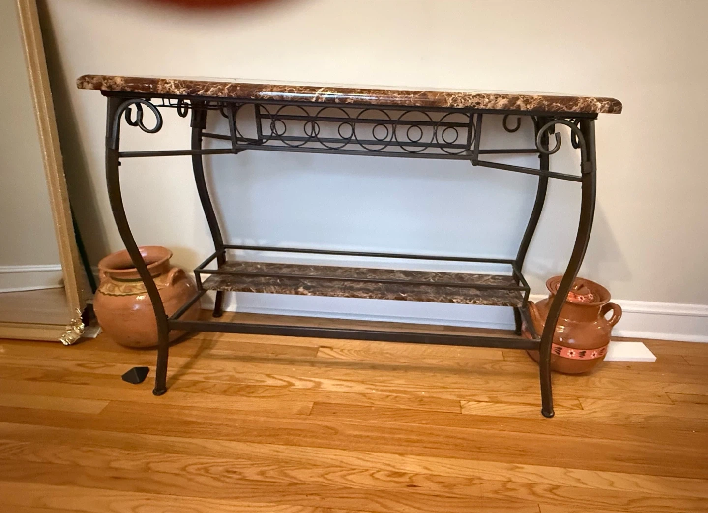 Buy & SellMarble Top Console TableMarble Top Console Table$30Selling a beautiful console table with a marble top. It's in great condition and would look lovely in an entryway or living room. The ornate metal base adds a touch of eleganceConditionLike new6 chats·5 favorites·73 viewsSELLERverifiedPerezBelmont Cragin600 reviewsWHERE TO MEETCheck Location