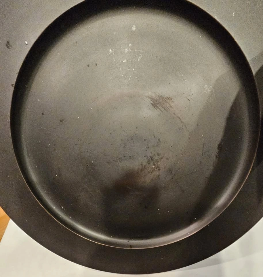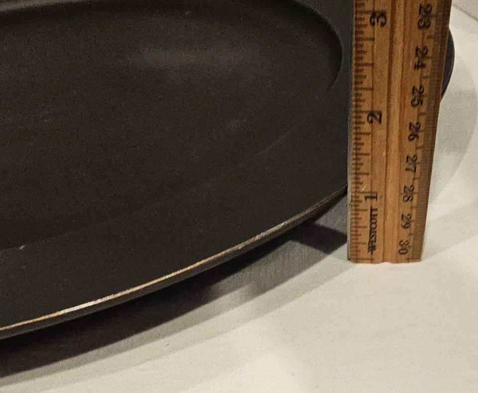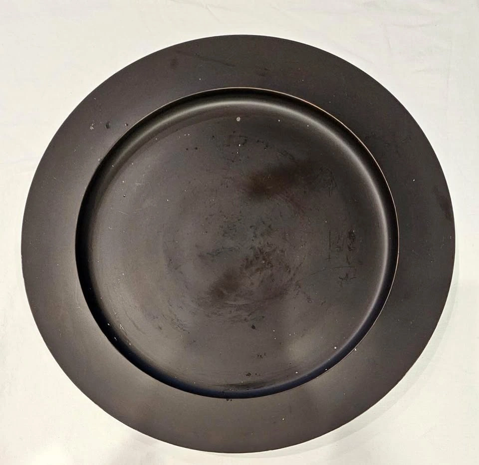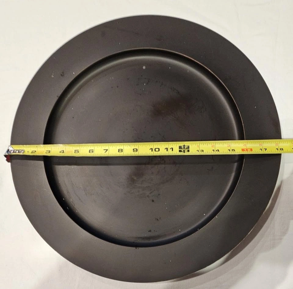 10Hard to find piece from Crate & Barrel. It has been used and does have some candle wax marks. Bronze Metal Candle Platter. Marked on back 500-356 Bronze Candle Platter Made in India For Decorative Use Only NOT FOR FOOD USE Three felt pads on the bottom that have moved from candle heat. Measurements Large 18 1/4" Diameter 13 1/2" Center and 1/2" Deep Overall height 1" Weight 4 pounds 2 ounces Please see photos, questions please message before purchasing.