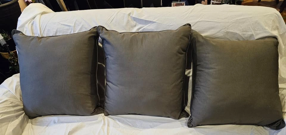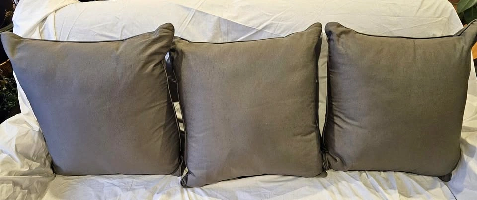 10Gray Pillows Large Set of 3 Pillows No stains or holes. Gray with a texture Each has a zipper for washing Pillow inserts are very firm. 24" Square 10" Deep Photos of both sides and top view. From Pet Free Smoke Free home Cash only at pickup