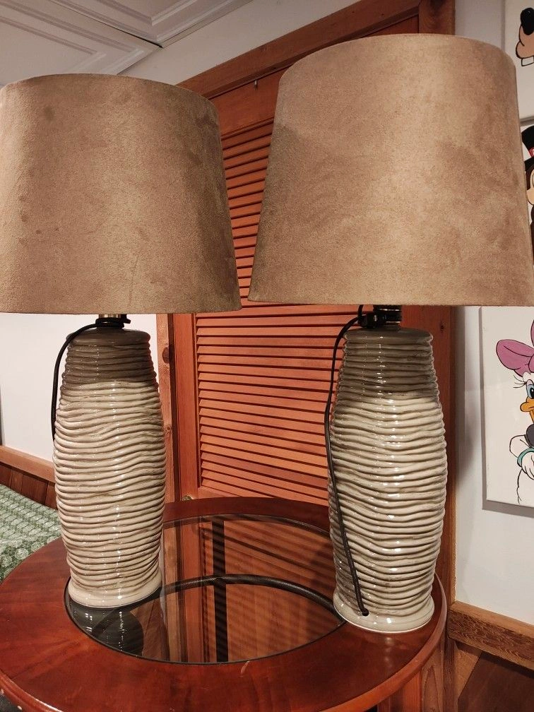 652 lamps and shades (slightly used) with 2 extra shades (new). Got it from Ashley furniture. Pet-free and smoke-free home. Meet up only. Color: Brown Type: Lamp shade