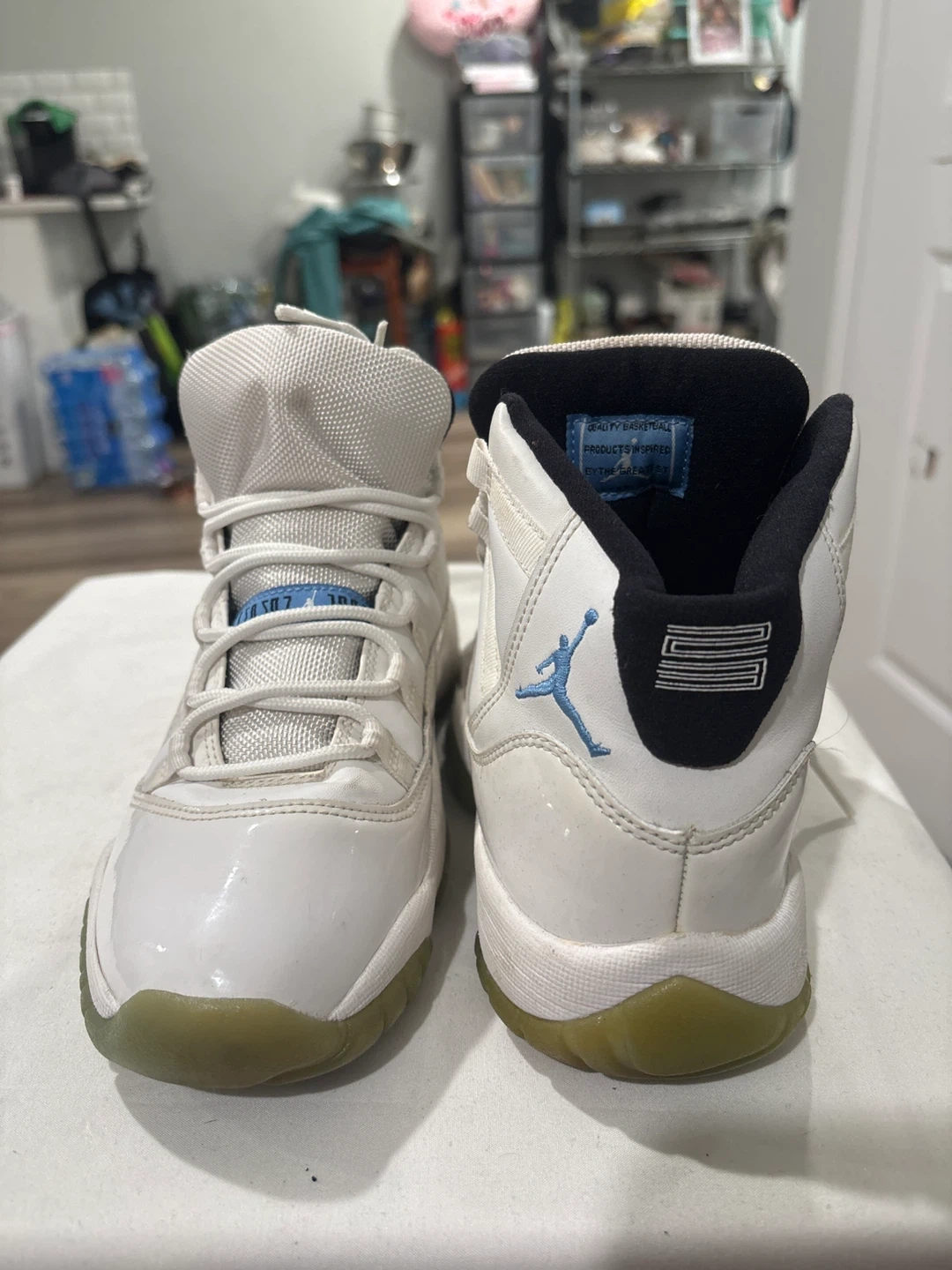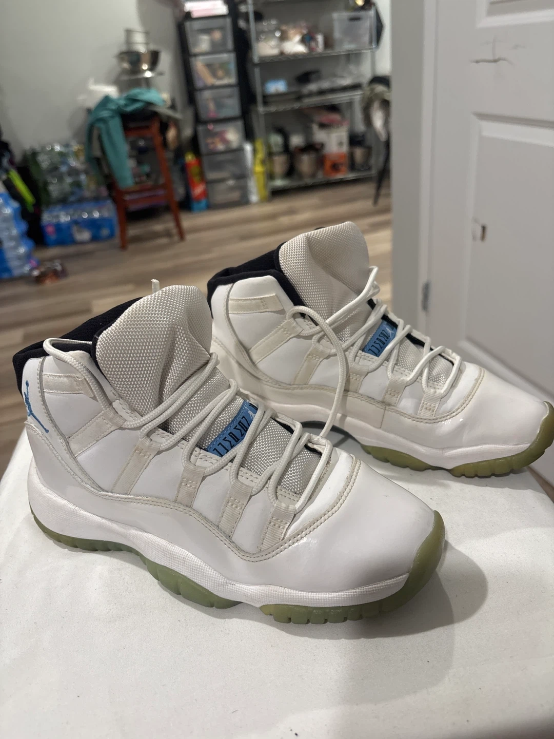 Selling a pair of Air Jordan 11 Retro Legend Blue sneakers. They are in used condition with some signs of wear, especially on the soles. Please see photos for details! Size 5Y