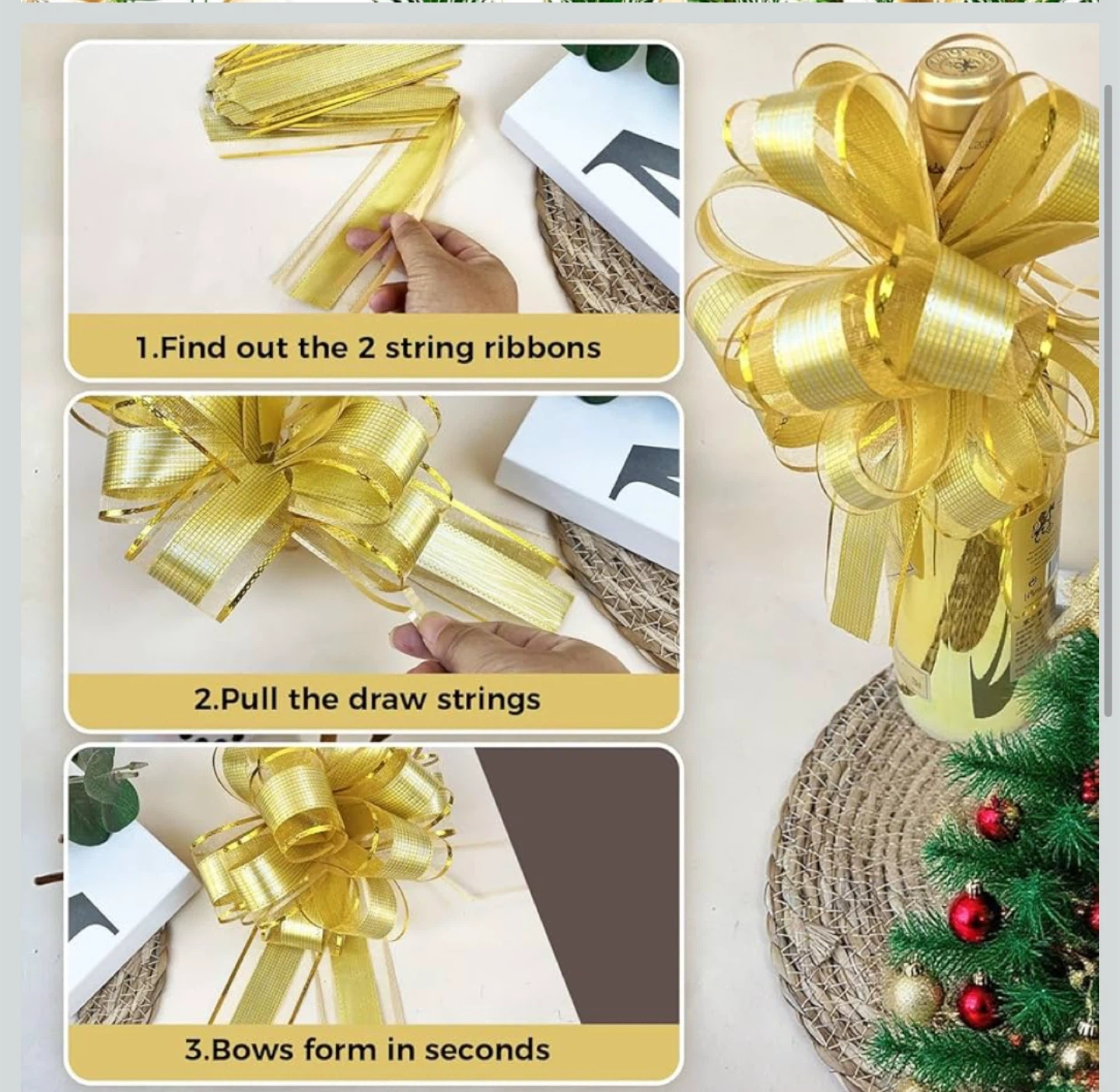 20-Pack 6-Inch Golden Gift Bows for Christmas Presents
