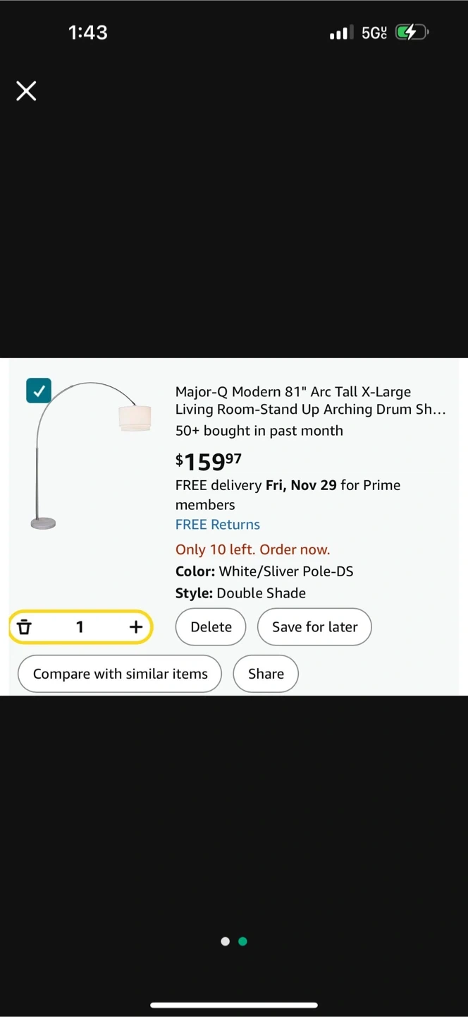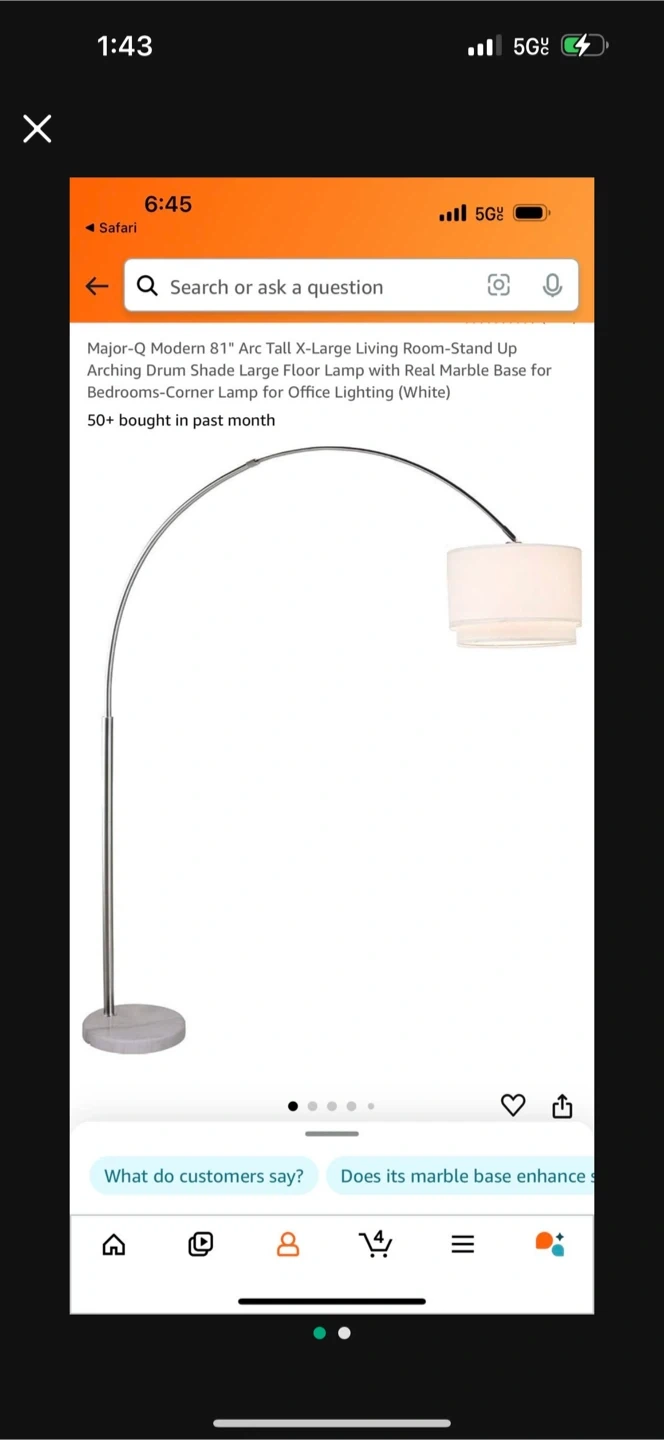 Buy & SellMajor-Q Modern 81" Arc Floor LampMajor-Q Modern 81" Arc Floor Lamp$76Selling a Major-Q Modern 81" Arc Tall X-Large Living Room-Stand Up Arching Drum Shade floor lamp. It has a white/sliver pole and a double shade style. Originally bought for $159.97ConditionLike new1 chats·7 favorites·110 viewsSELLERNimaPortage Park100 reviewsWHERE TO MEETWalgreens