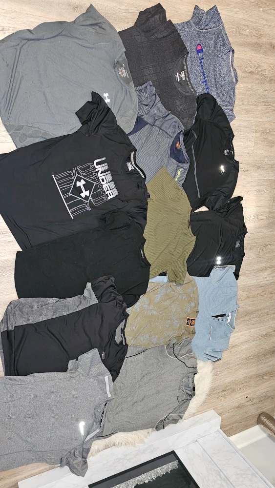 This lot includes 14 mens tshirts size xl. All in pretty much excellent condition! includes 3 Nike, 3 under Armour, and 1 champion, as well as others. Asking $50 for all! That's only $3.50 each!! Need gone ASAP!