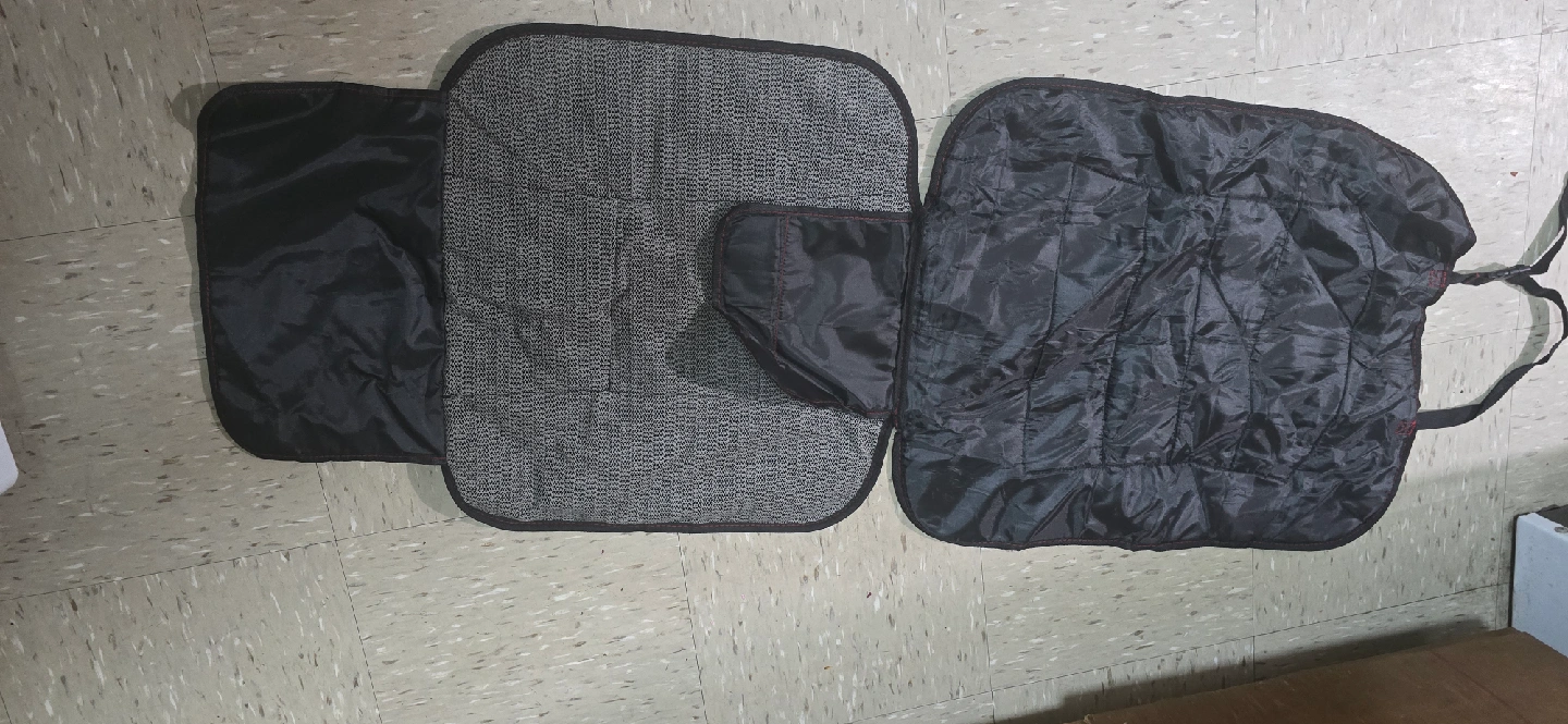 Selling a car seat protector in good condition. It's black and gray. Protects your car seats from spills and messes