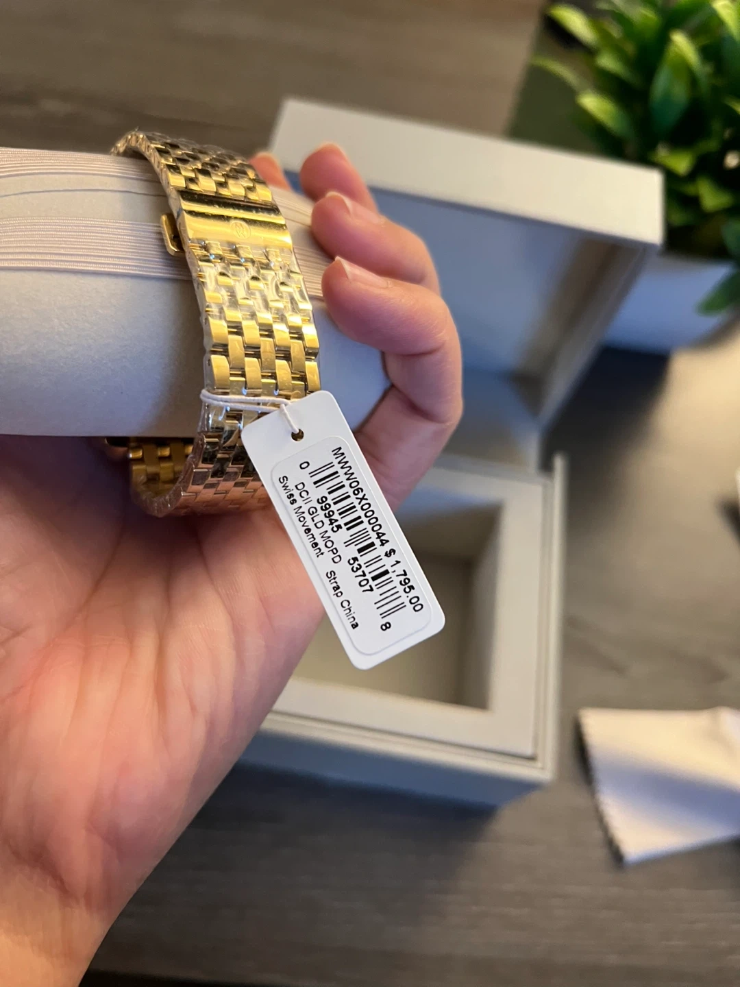 Available for pickup in Chicago Can deliver within USA ✨Brand New - Never Used✨ From the Deco II Collection. This stylish timepiece is enlivened with a shining diamond-studded dial. 🌸Swiss quartz movement 🌸Fixed bezel 🌸Mineral crystal 🌸White diamond dial, 0.11 tcw 🌸Roman hour markers 🌸Stainless steel 🌸Deployant buckle FEATURES 🌸Water-resistant to 5 ATM 🌸Model number: MWW06X000044 SIZE 🌸Rectangle case, 29mm (1.1") 🌸Bracelet strap, 18mm (0.7") Actual Price is $1795 + GST 💵Selling for $1000💵 (postage fee included for USA)
