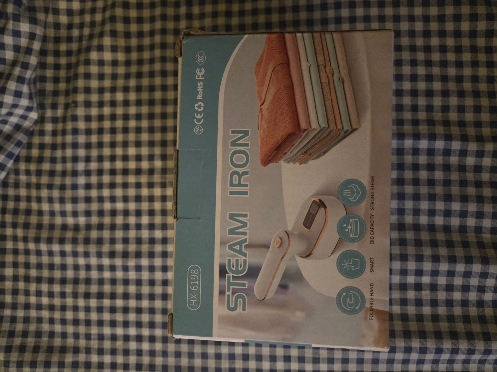 10Selling a portable steam iron, model HX-6198. It features a foldable hand, smart design, big capacity, and strong steam. The box is included. New not used
