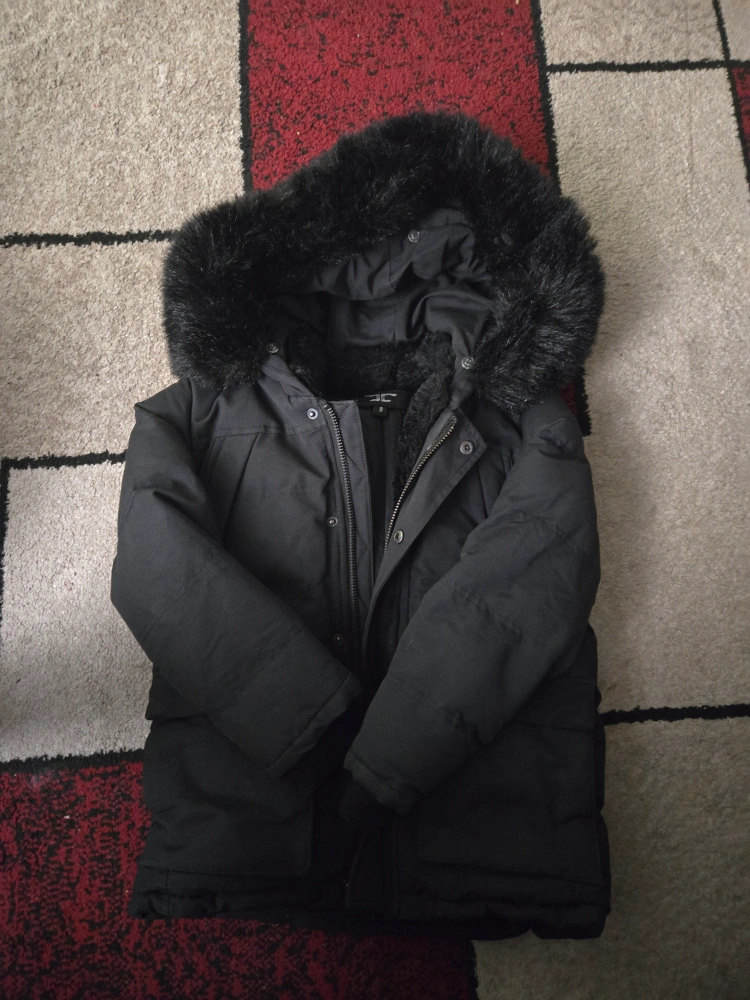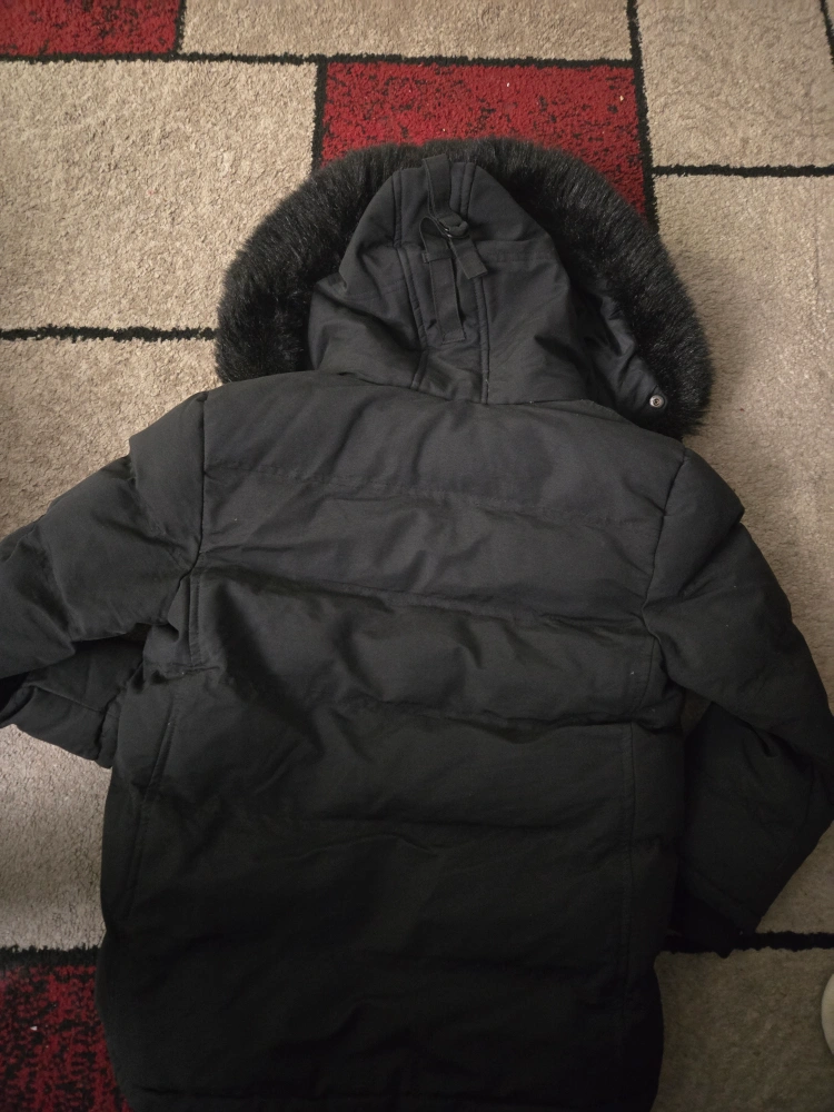 62Selling a black padded winter parka from H&M! It features a faux fur hood and is perfect for staying warm during the colder months. The jacket is in great condition and ready for a new home