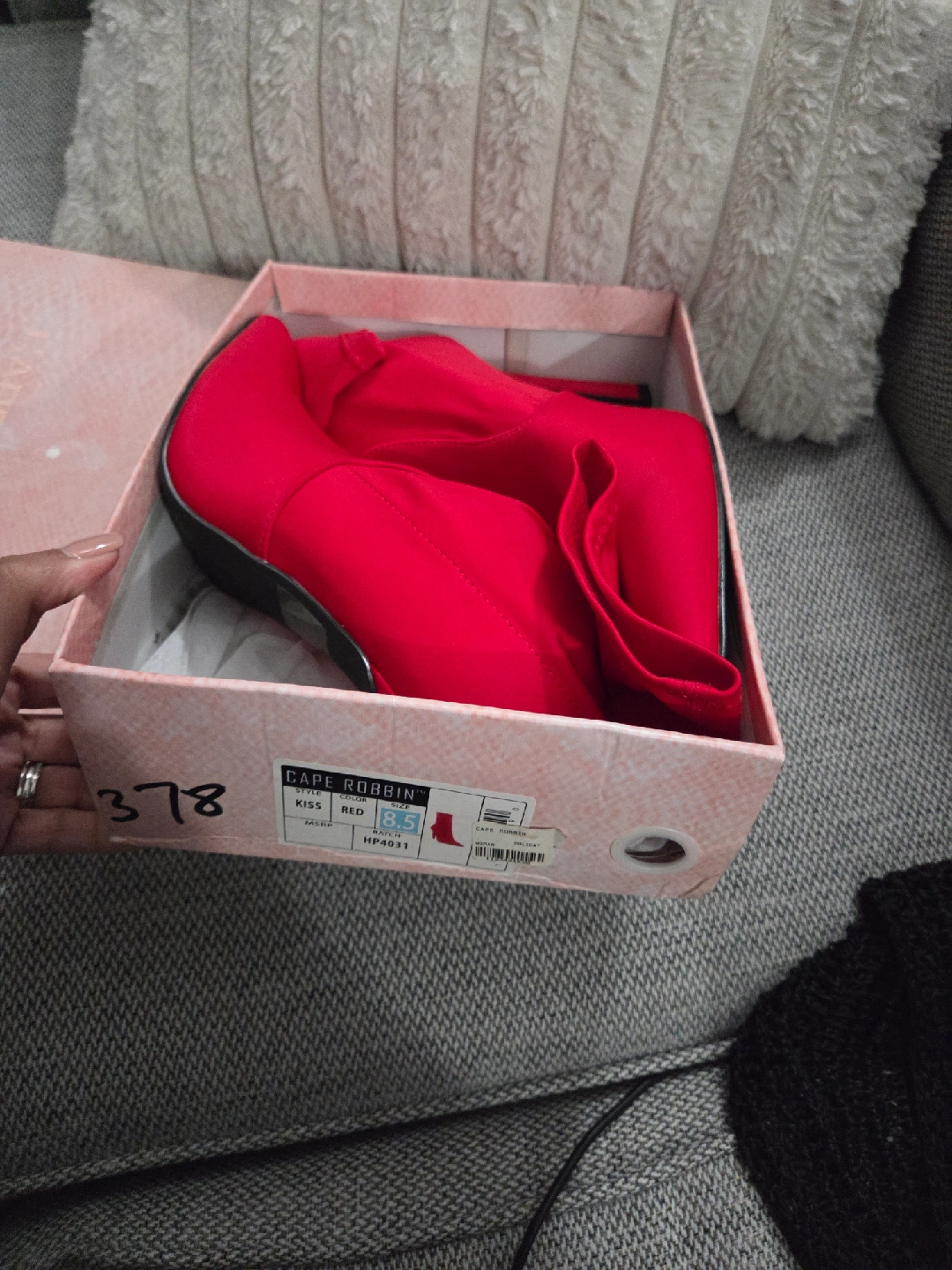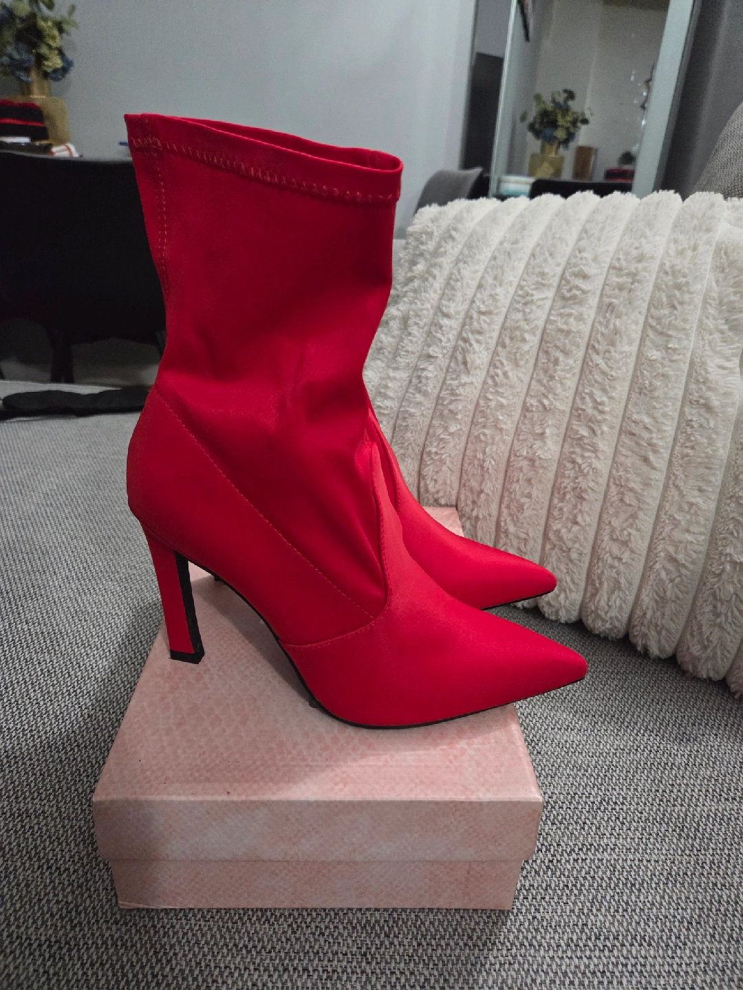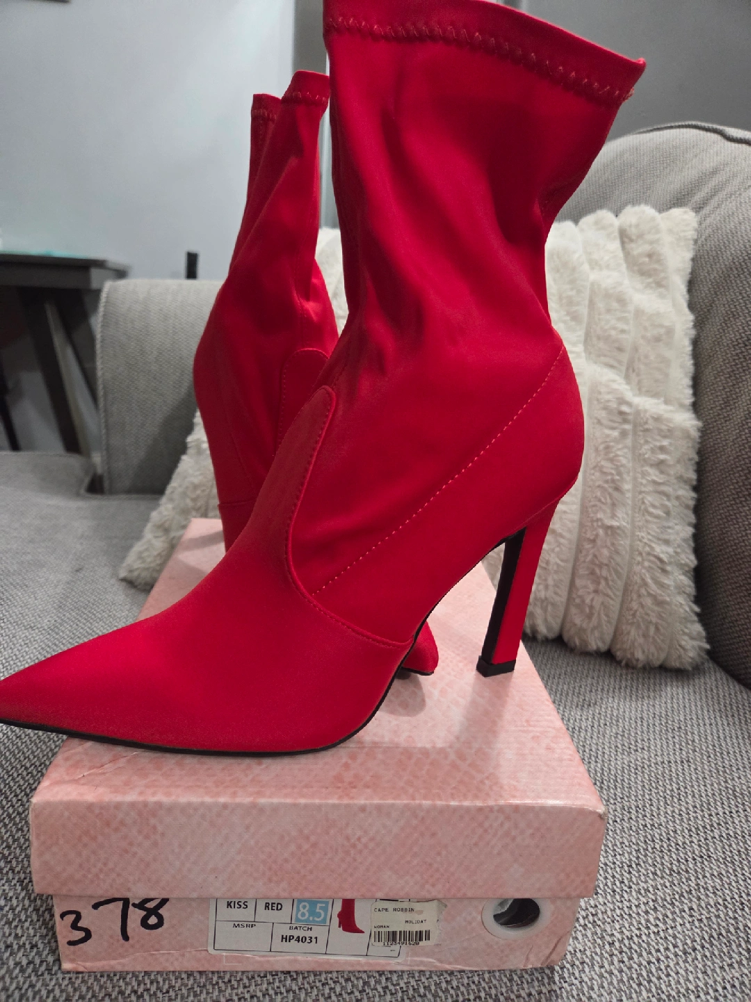 60Selling a pair of Cape Robbin heeled booties in a vibrant red color. These come in the original box. They are a size 8.5