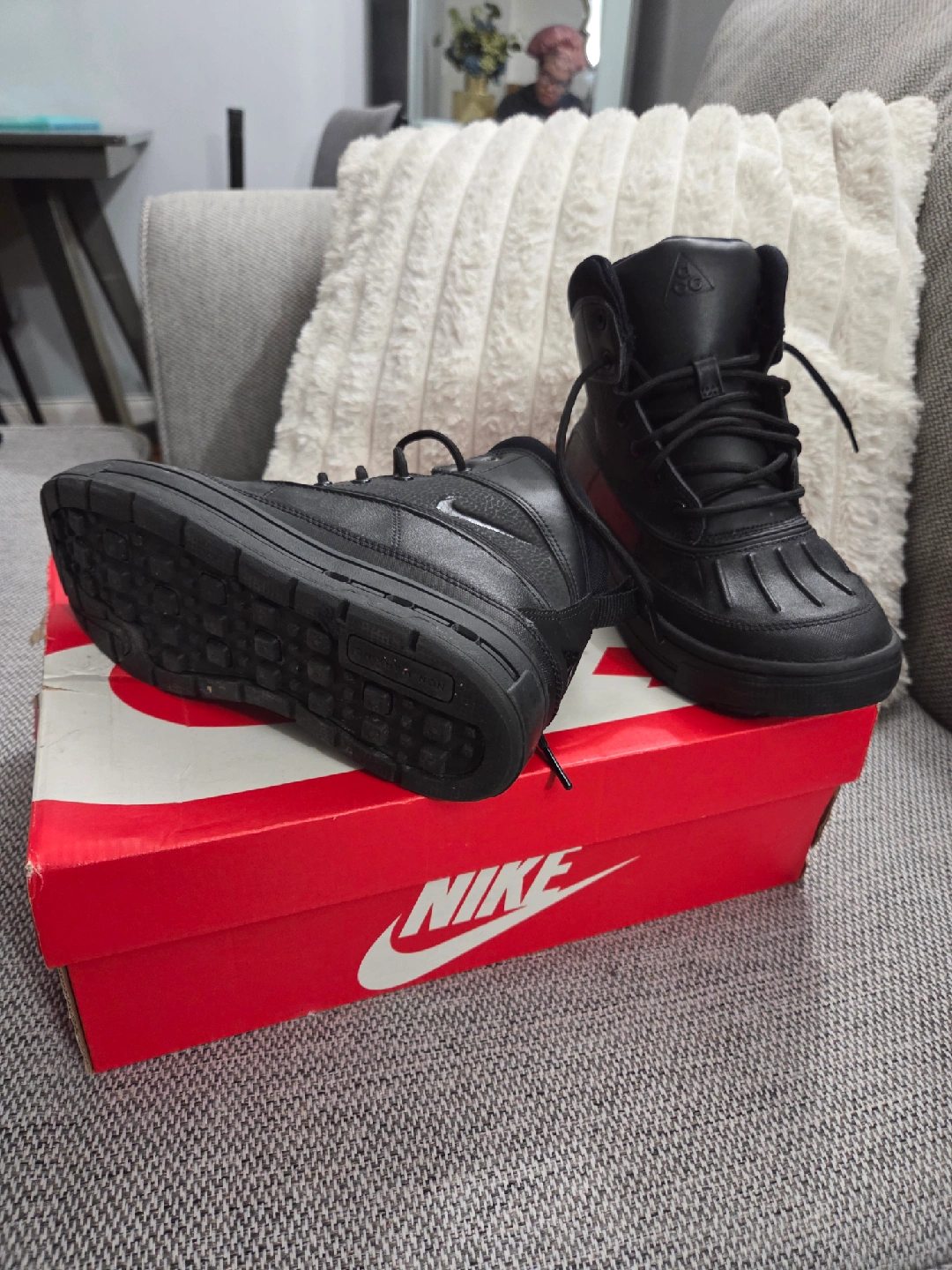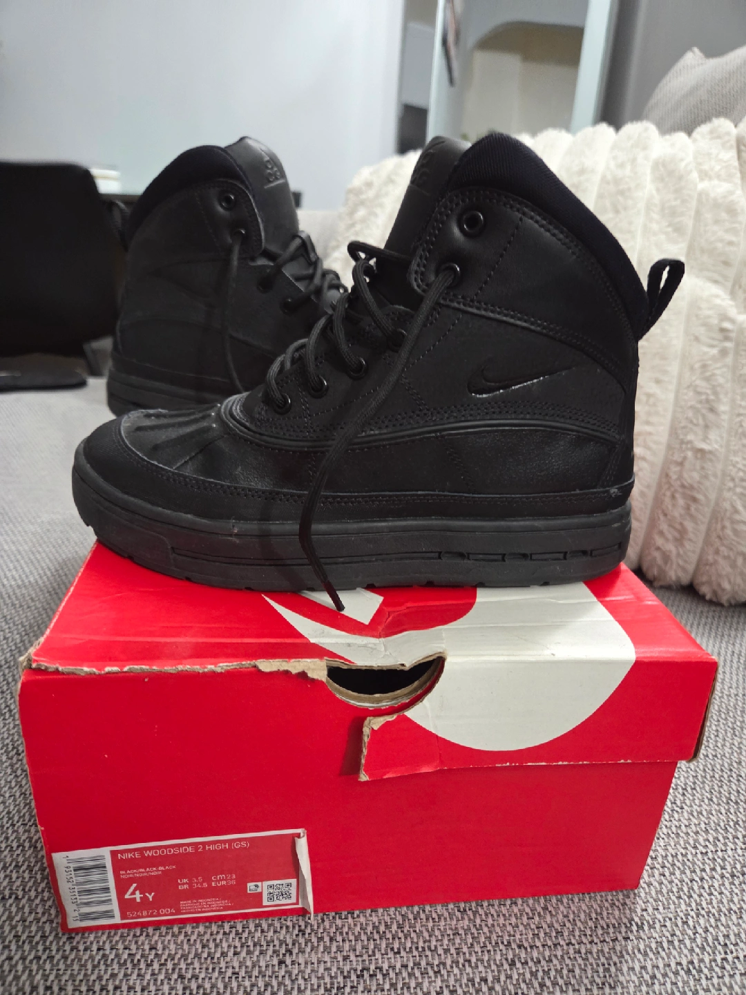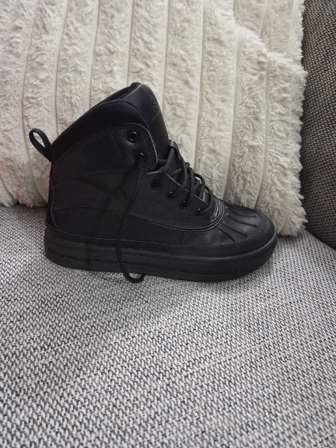 60Selling a pair of Nike Woodside 2 High (GS) Boots – Black (Youth Size 4Y) These Nike Woodside 2 High (GS) boots are in great condition and come with the original box! Designed for durability and comfort, they feature a water-resistant upper, rugged sole for traction, and warm interior lining — perfect for everyday wear or cold, wet weather. ✨ Details: Color: Black Size: Youth 4Y Condition: Gently used / Excellent condition Comes with original Nike box Stylish, sturdy, and ready for the season — grab them before they’re gone! Perfect for keeping your feet warm and dry!
