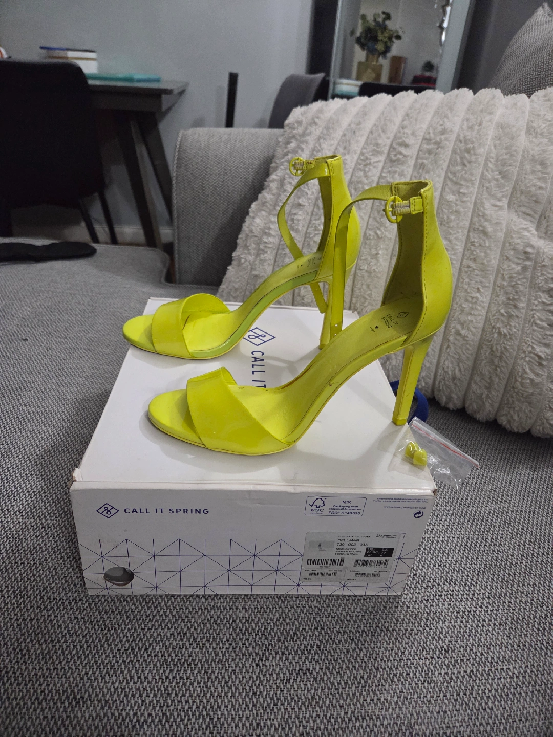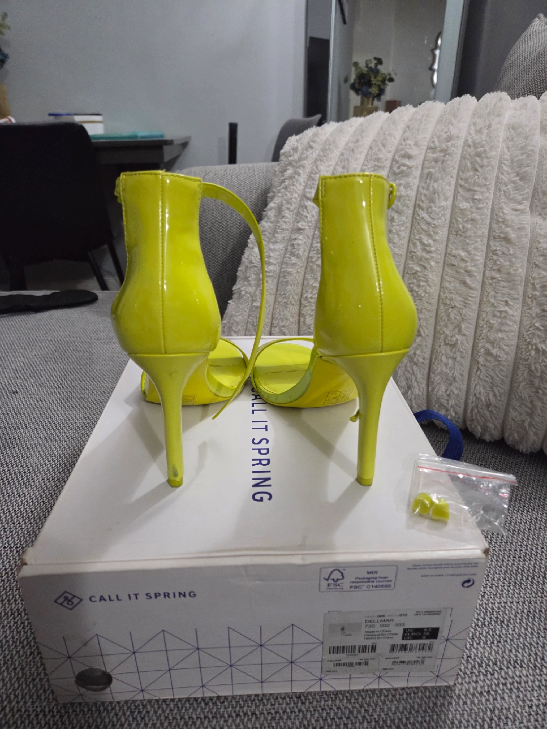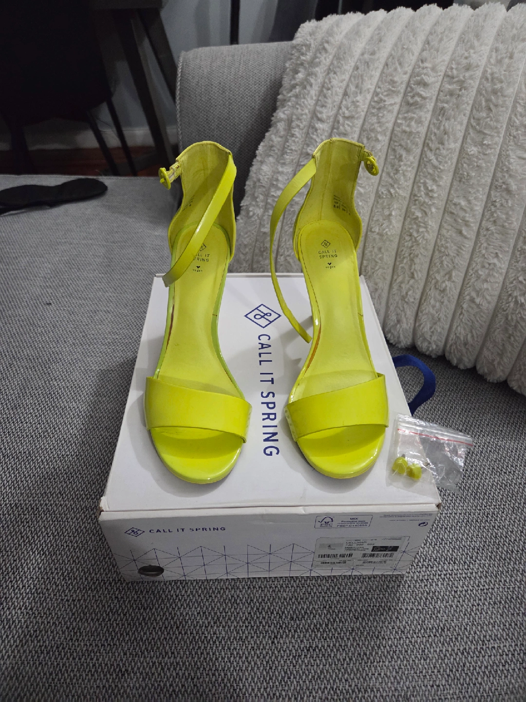 60These Call It Spring Dellmar heels are in great condition! They are a vibrant yellow color and size 8.5. Comes with the original box and extra heel pieces.