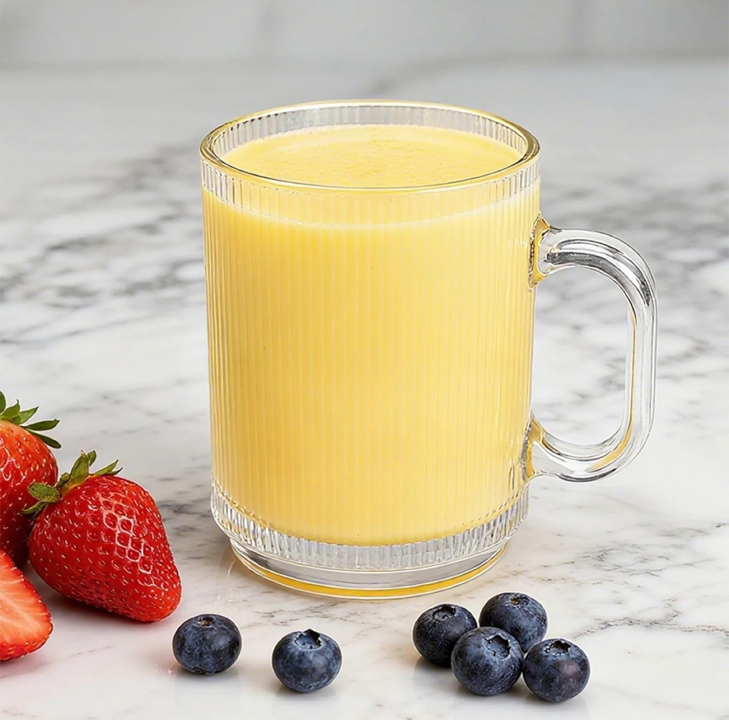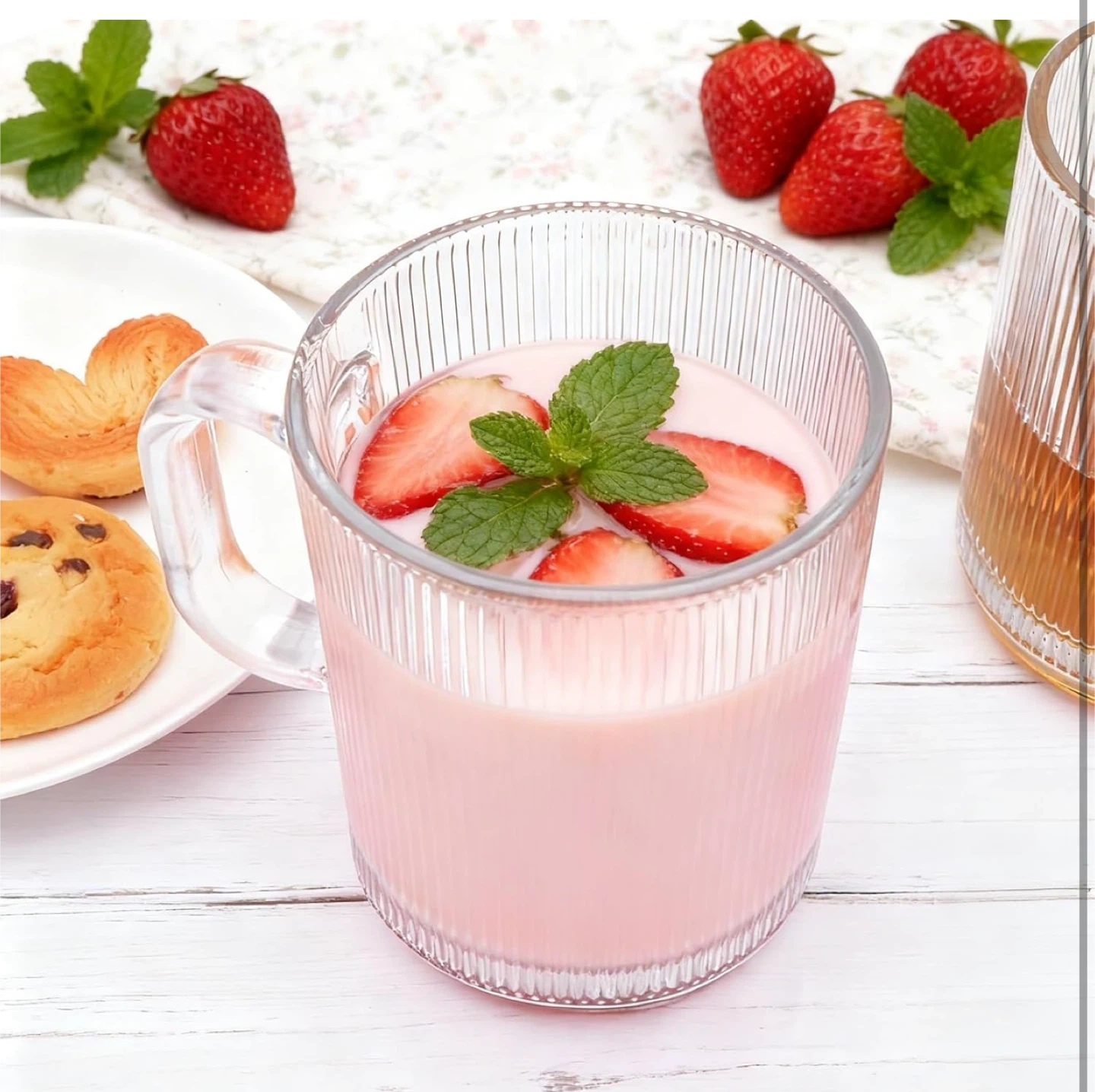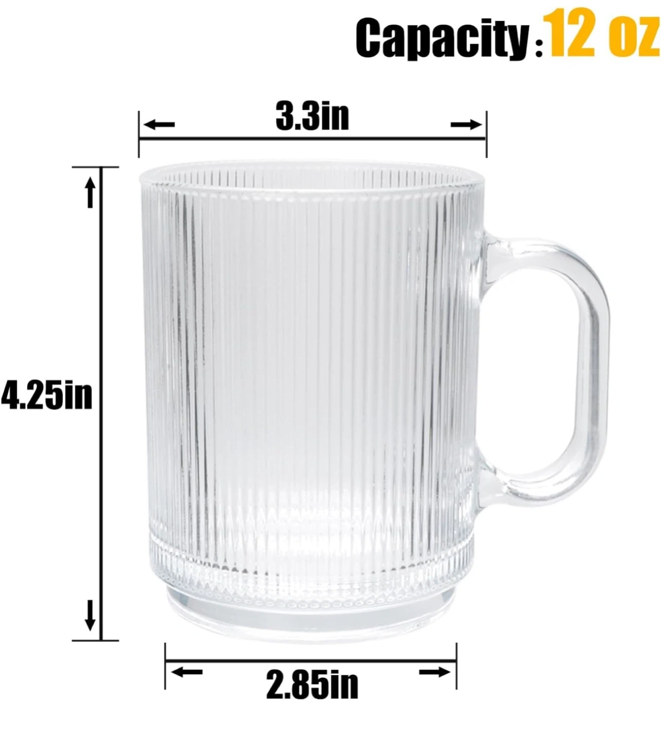 6 PACK Glass Coffee Cups with Handle & Spoon, 12 OZ Glass Coffee Mugs, Ribbed Glass Cups, Clear Tea Cup for Hot/Cold Beverages, Glassware Set for Americano, Latte, Cappuccino