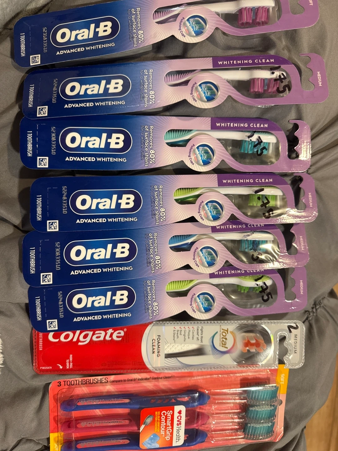 Selling a mix of Oral-B Advanced Whitening and Colgate Total toothbrushes! All are brand new and in their original packaging. Great for stocking up!
