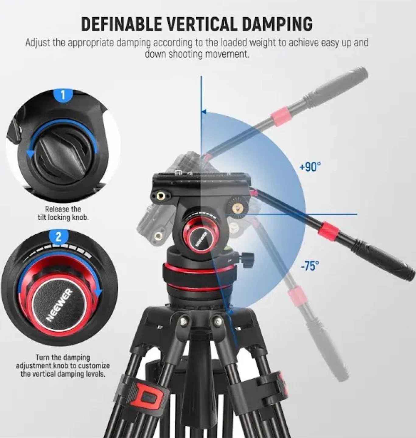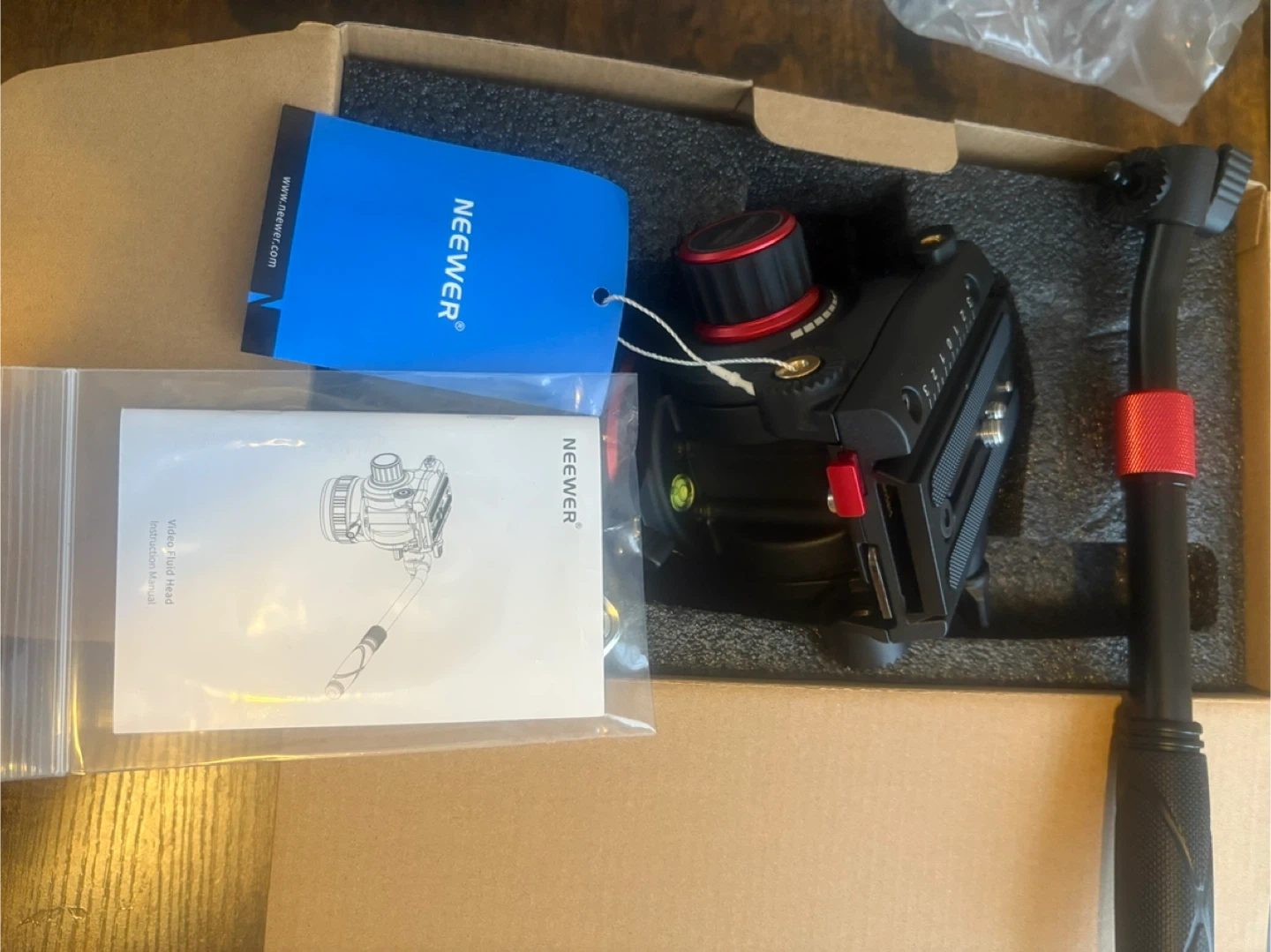 67Selling a Neewer video fluid head. It comes with the original box and instruction manual. It allows adjustment for appropriate damping according to the loaded weight.