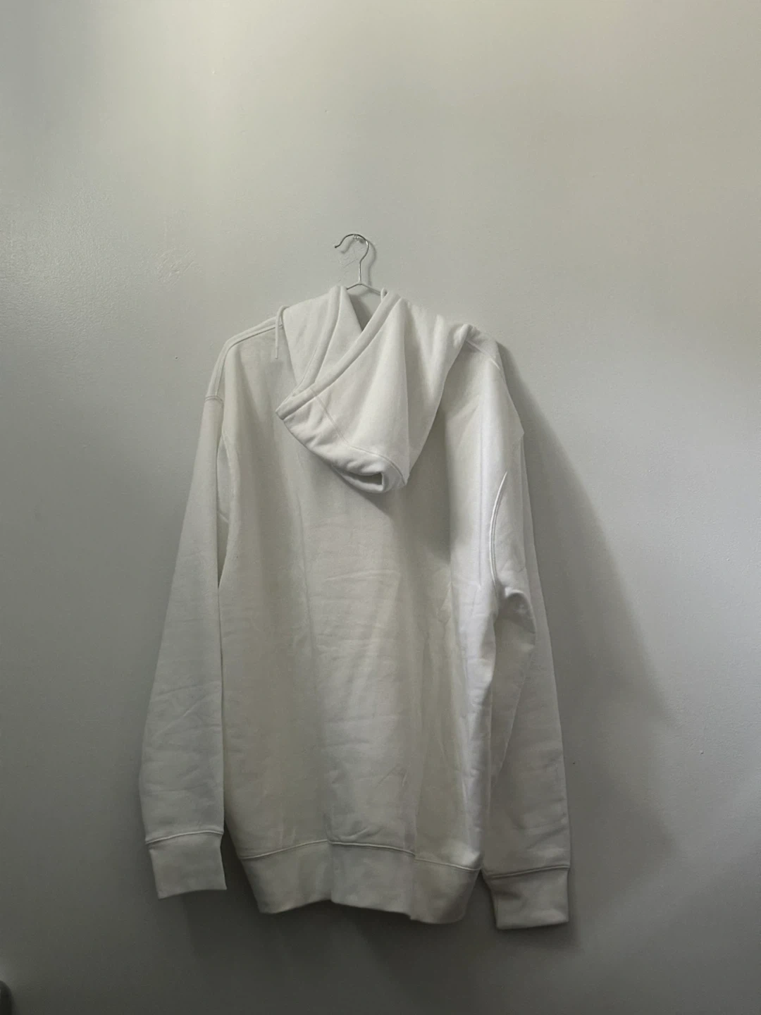 Selling a Nike white full zip hoodie in size XL. It's in great condition and ready for a new home! Perfect for layering or wearing on its own. The material is soft and comfortable, making it ideal for everyday wear