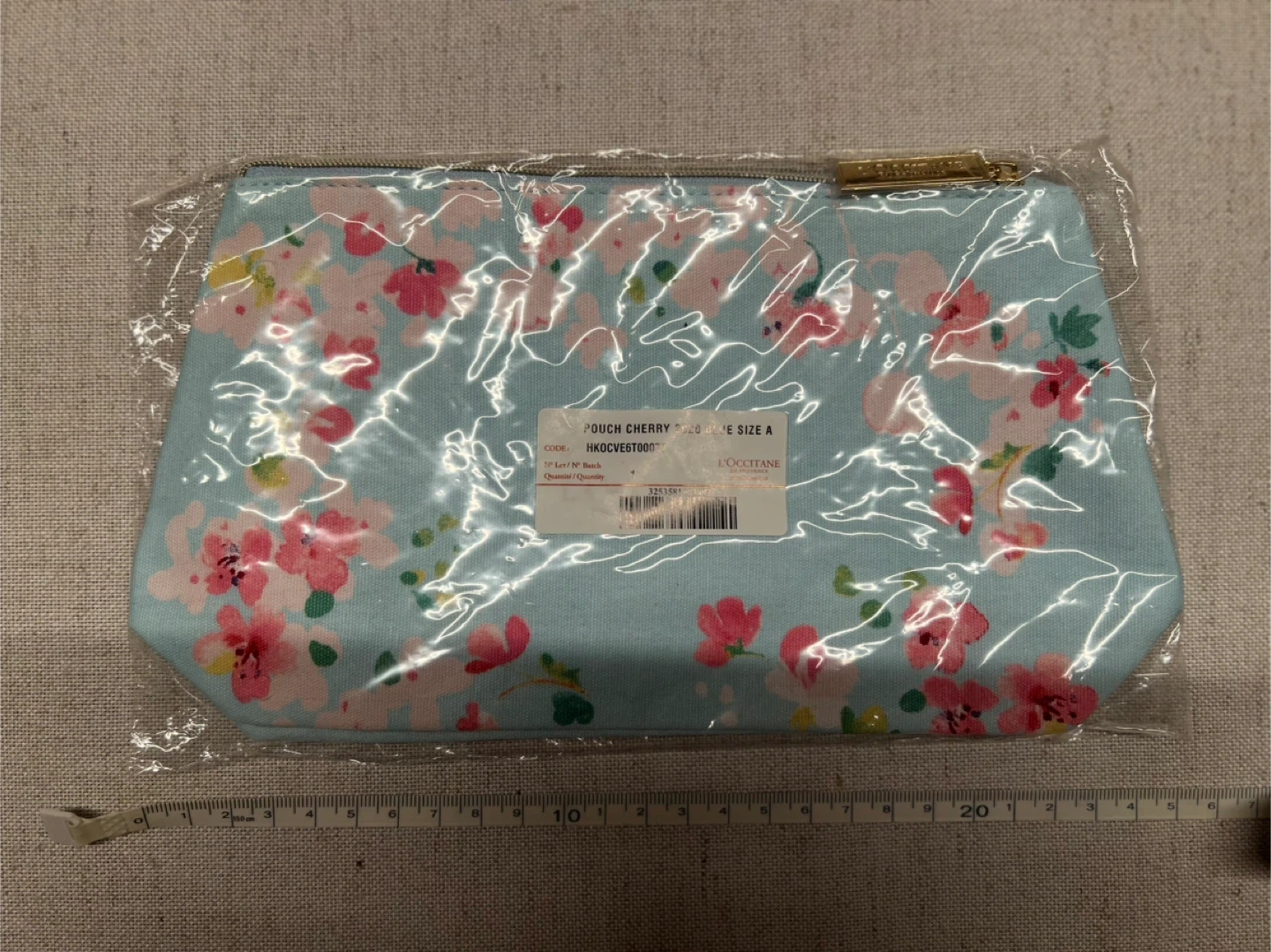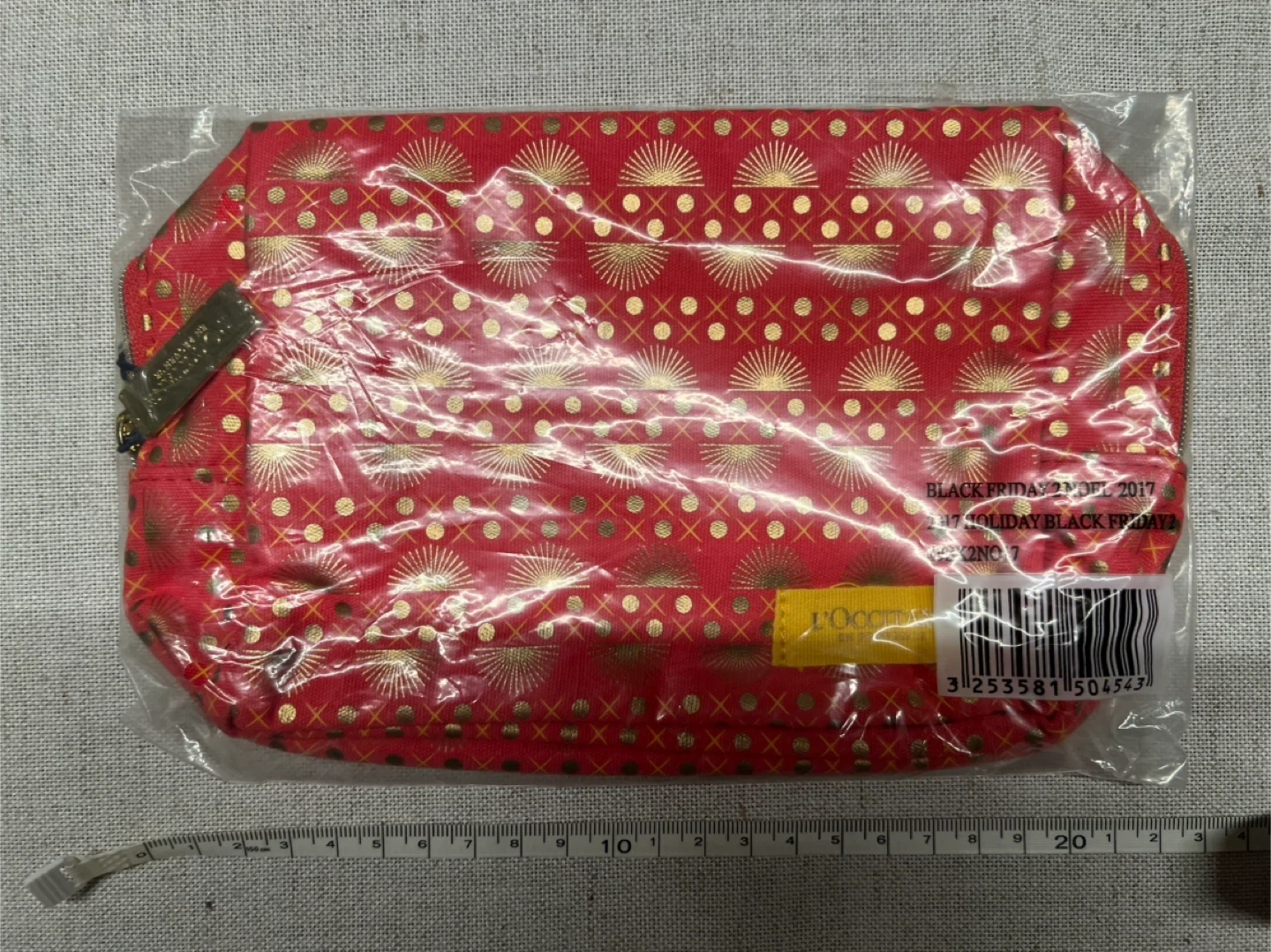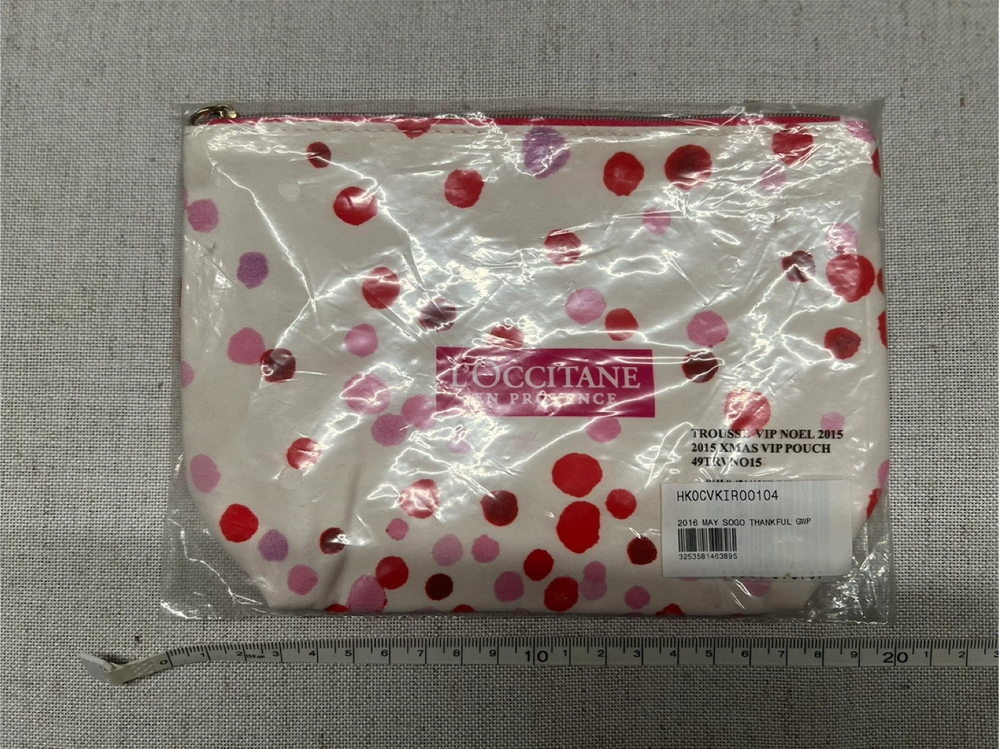 I have a few brand new L'Occitane cosmetic bag still in their original packaging. They are perfect for storing your makeup or other small items. They come in a variety of colours and patterns. Great for travel or everyday use!